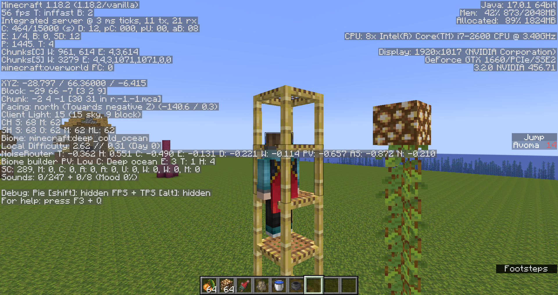 /scoreboard objectives add Jump minecraft.custom:minecraft.jump/scoreboard objectives setdisplay sidebar JumpCreate a pillar of scaffolding