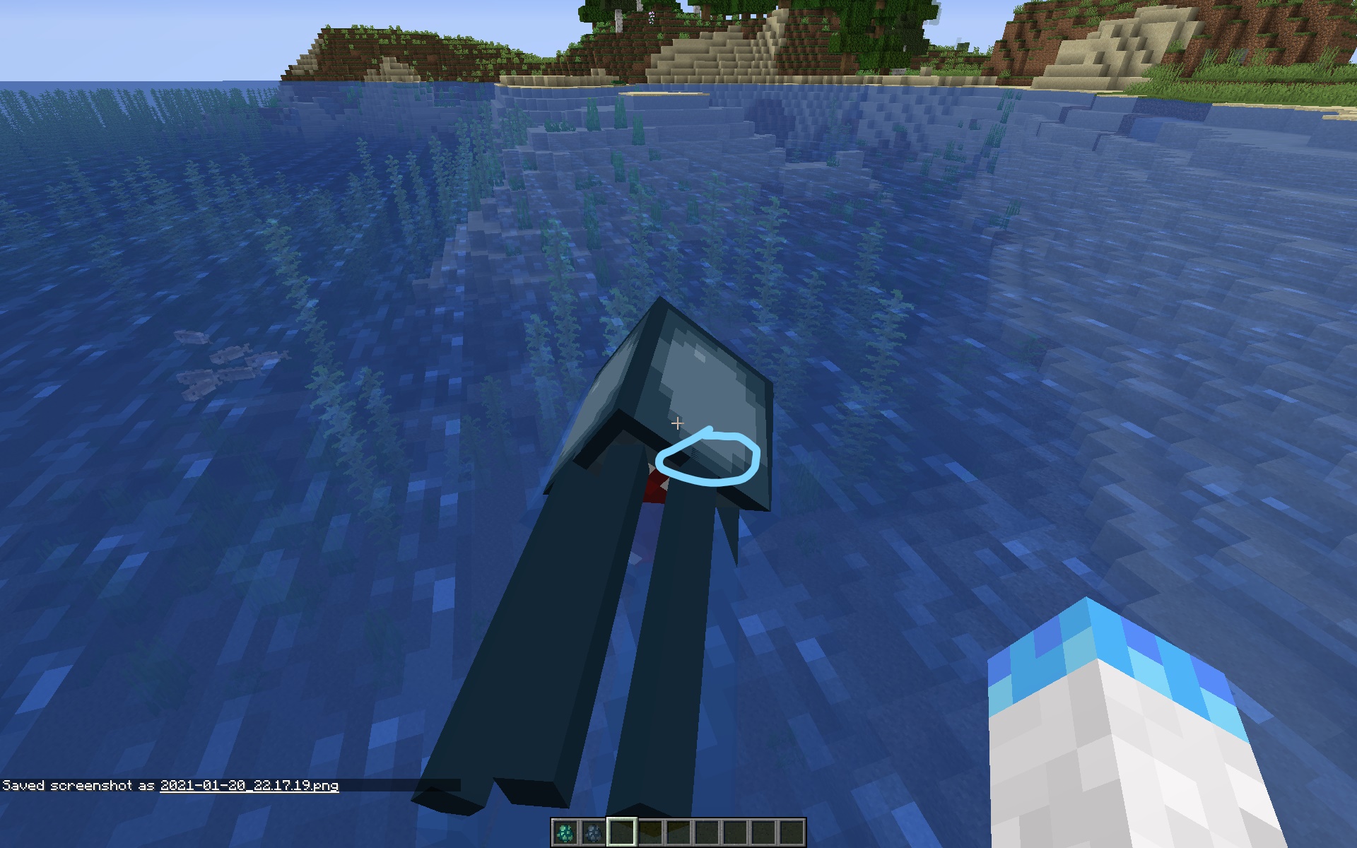 The glow squid has some overlapping textures around its tentacles. Specifically around the body of the squid. Although the glow squid is supposed to be distracting, I don't think this is what we're supposed to look at.