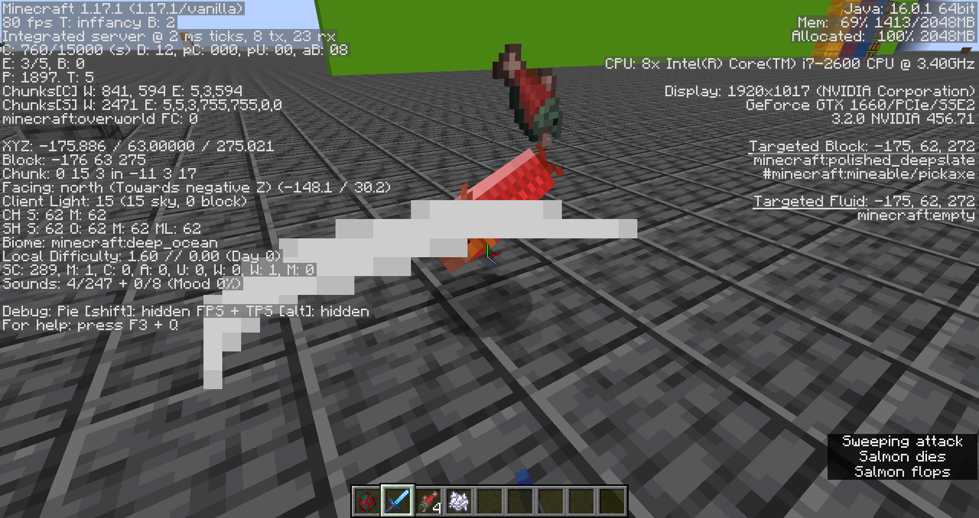 /give @s minecraft:diamond_sword{Enchantments:[{id:"minecraft:looting",lvl:100}]}Summon a cod, salmon, tropical fish, or pufferfish.