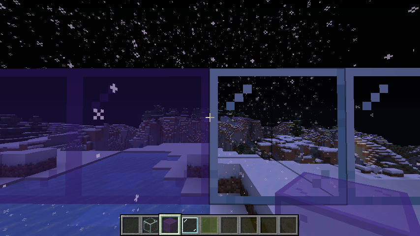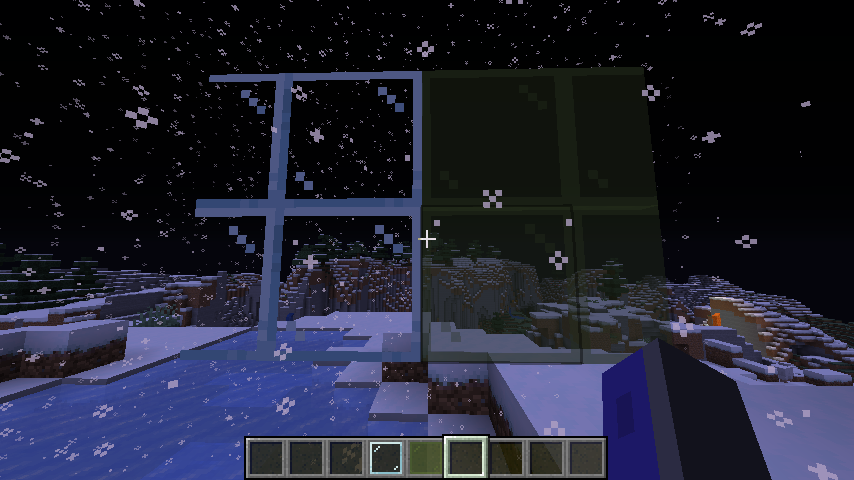 Can't see snow or rain through colored glass panes or glass blocks