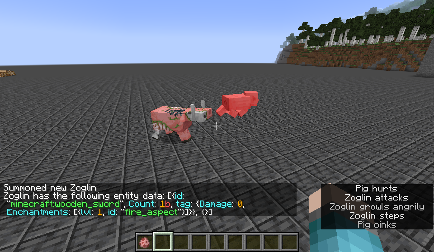 As the zoglin attacks the pig, take note as to whether or not the pig is ignited.
