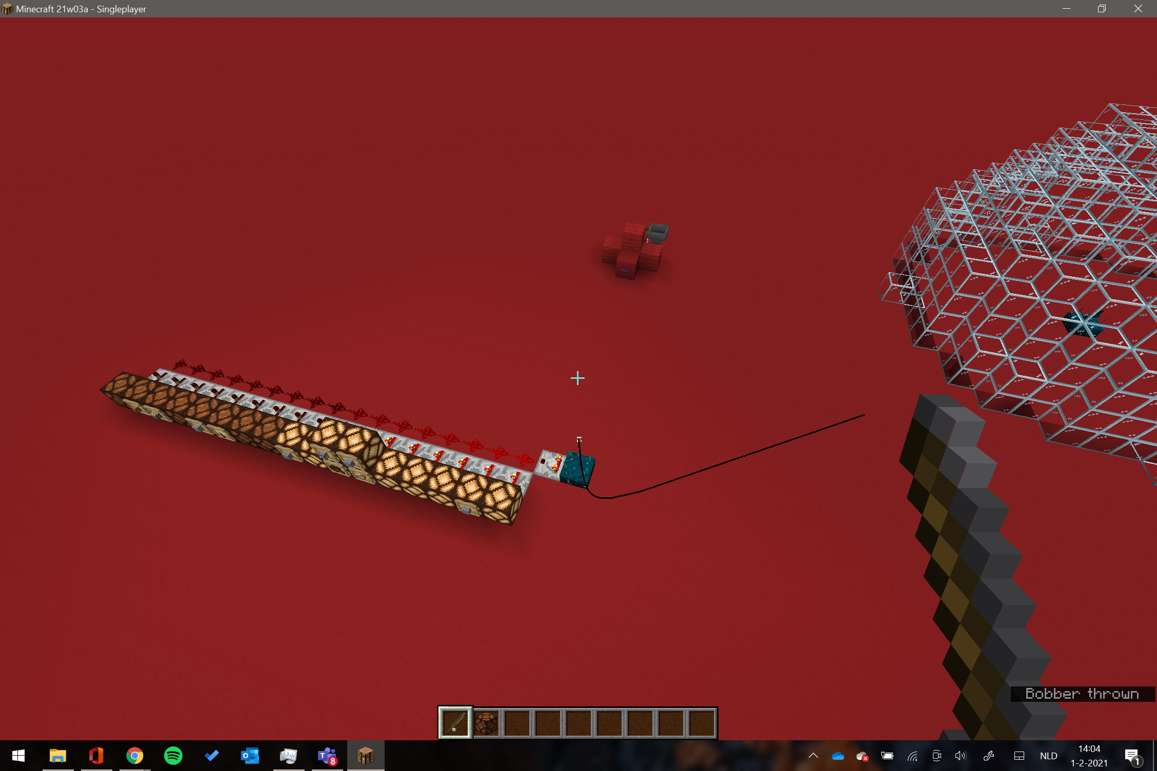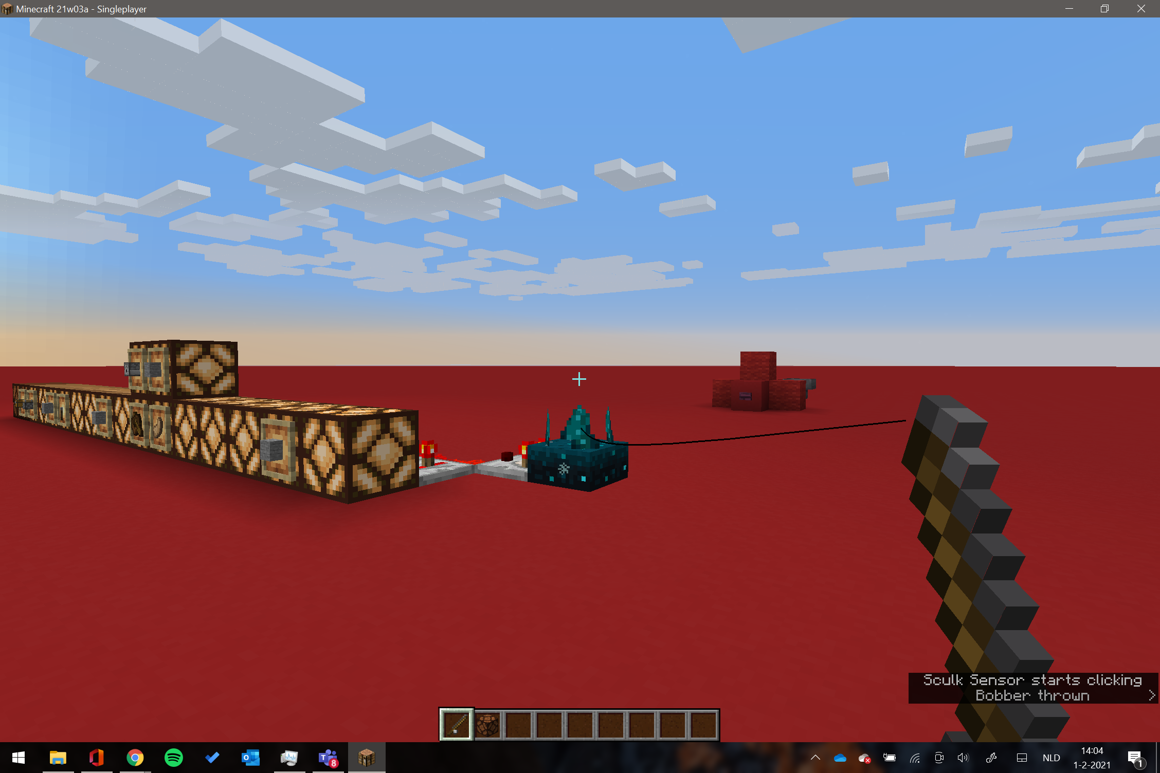 scenario 1; close to sculk sensor, casting and retrieving the line gives to different strong outputs