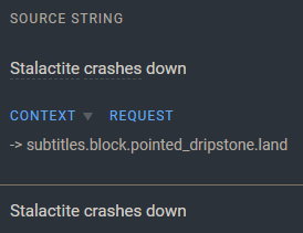 Destroy the diamond block and watch your closed caption overlay closely as the stalactite breaks.