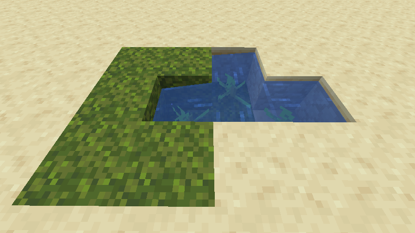 In this screenshot, the blocks with kelp are source blocks, the other water block stays flowing.