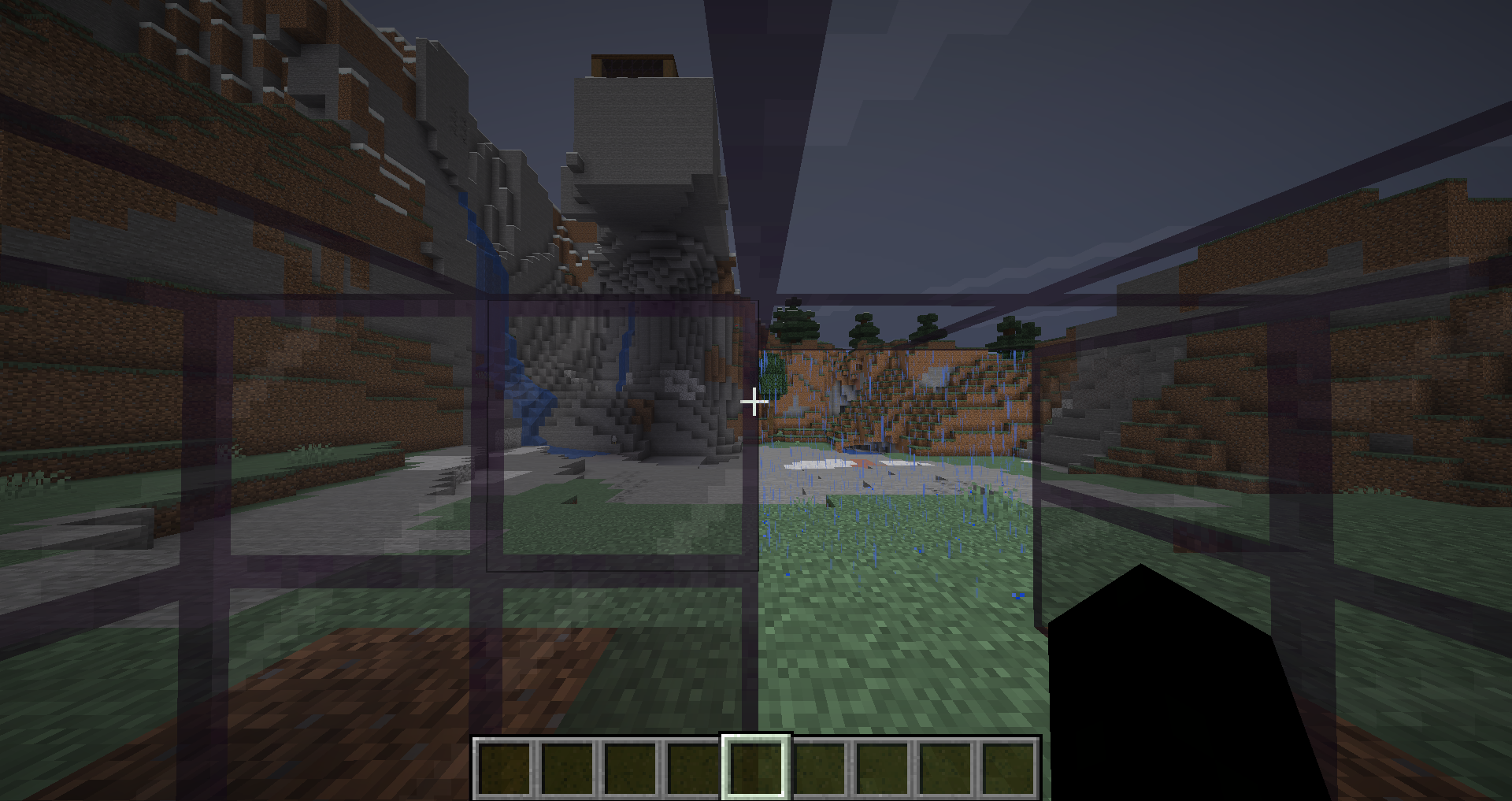 Whenever viewing weather (rain, snow) through tinted glass, the player is unable to see any weather particles. Lightning bolts are still visible through tinted glass.