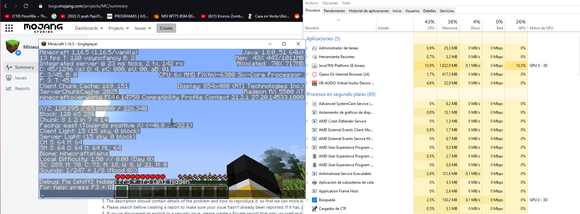 The calculate of memory ram that's error, because in minecraft calculate 443MB and the real consume of minecraft is: 1.022,0MB this error is pass to the limit to the consume ram. This error it's in all versions. And i'm not only person to have this problem. Thanks.