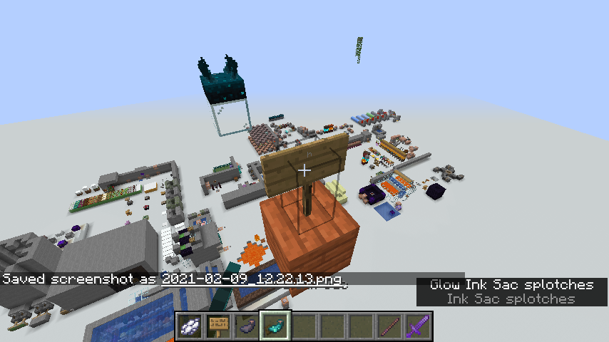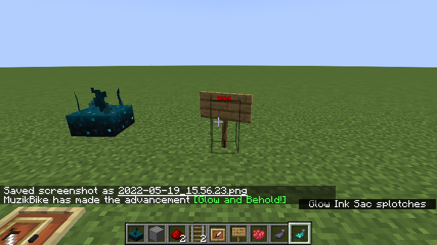 /setblock ~ ~ ~ minecraft:dark_oak_sign{Color:"magenta",Text1:'{"text":"MC-214619"}'}Place down a sculk sensor nearby and obtain some ink sacs and glow ink sacs.