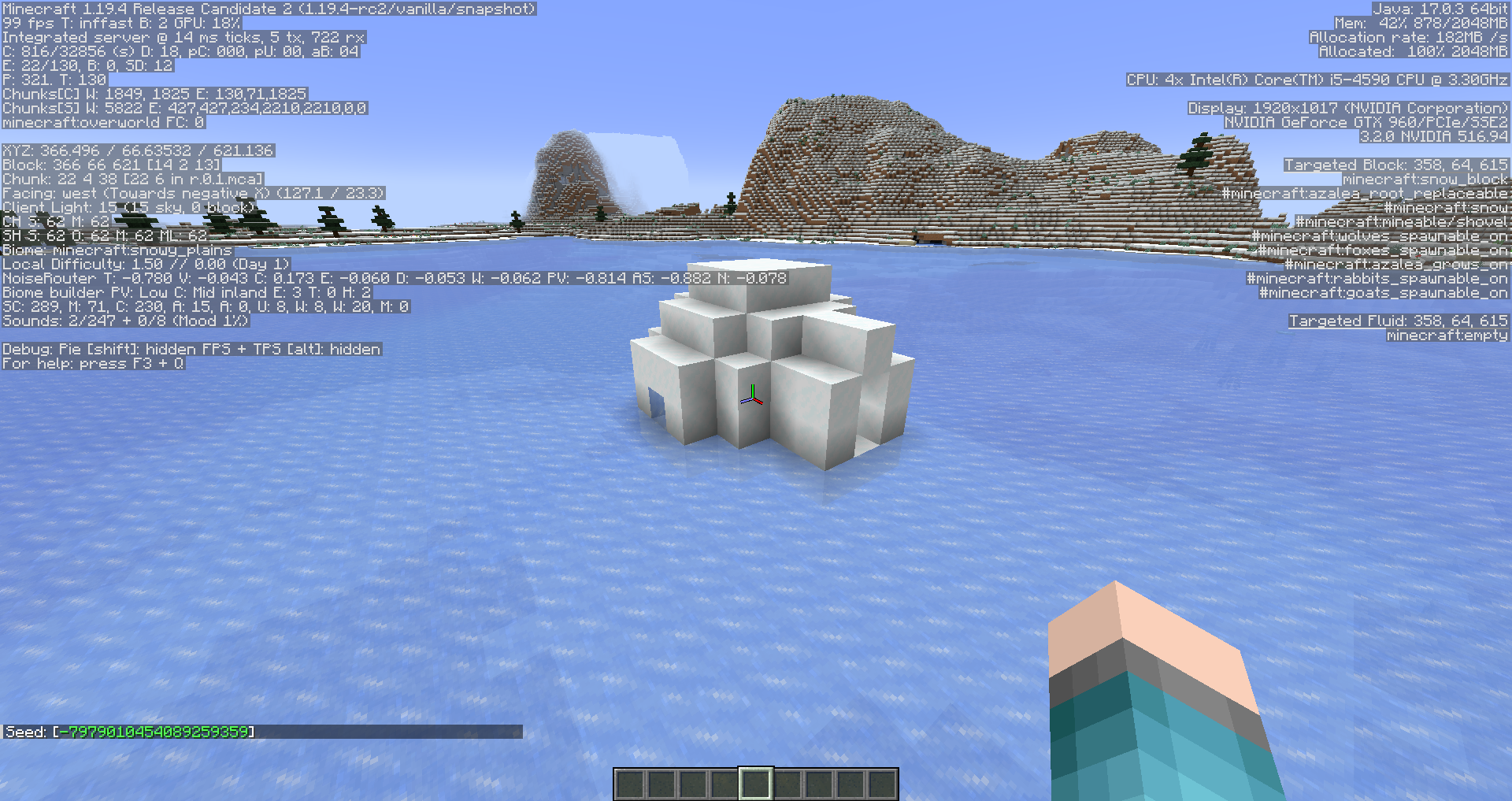 Generate a world with any of the seeds provided above and teleport to the given coordinates.