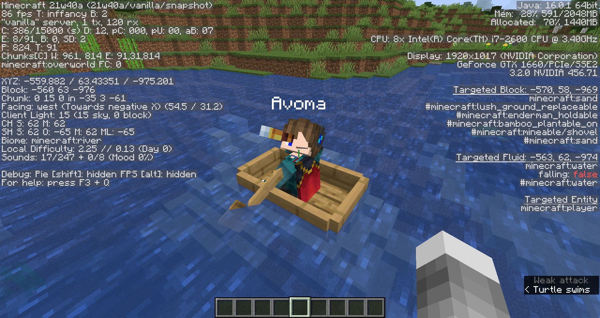 • Take note as to whether or not the arms of players can pass through their heads when using spyglasses whilst riding boats.