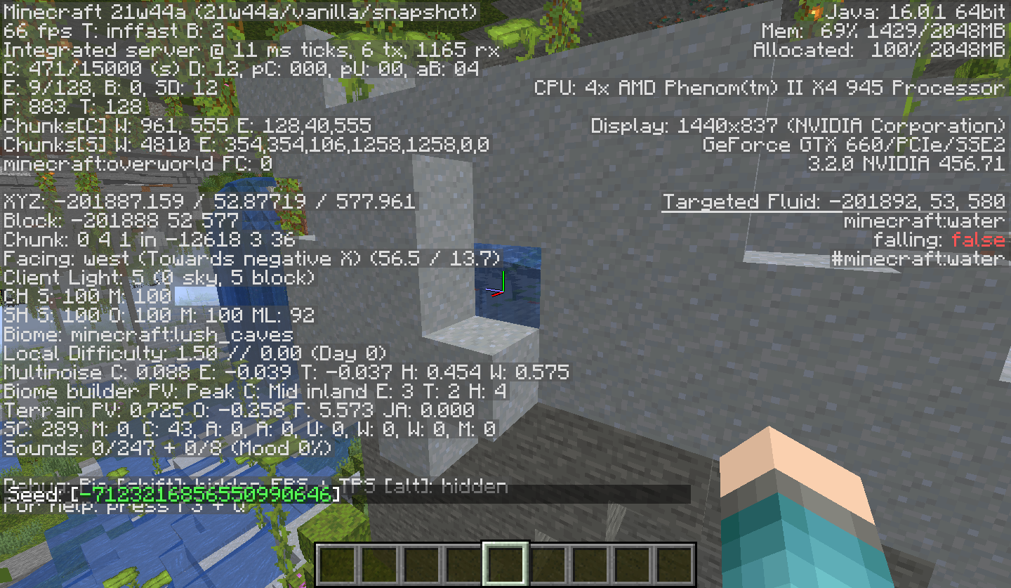 Coordinates: /execute in minecraft:overworld run tp @s -3256.64 20.73 -5797.15 -6134.40 30.36This issue was present in 1.18 Pre-release 1, but is no longer in 1.18 Pre-release 3 likely due to the fix of MC-223840. There is no need to reopen this report. 🙂