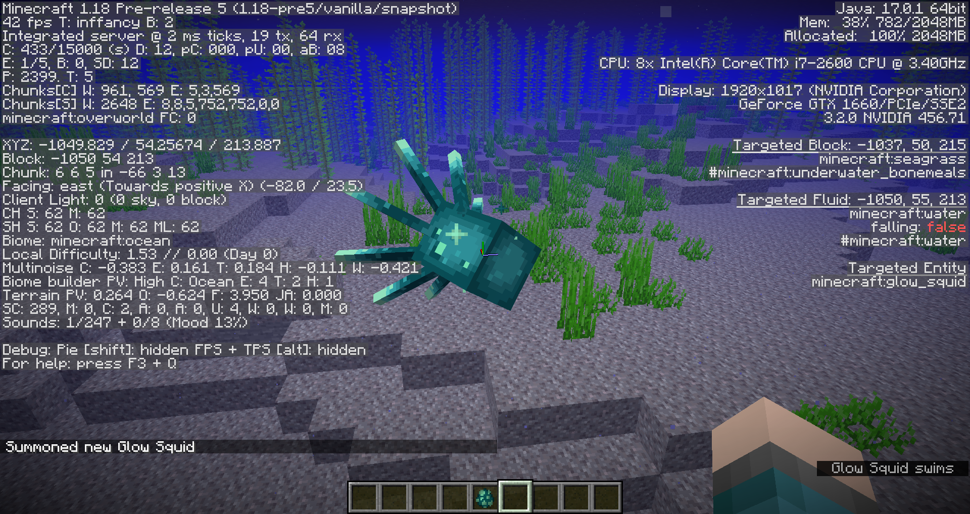 Launch an instance of Java Edition, and attempt to summon a baby glow squid by using the following command.