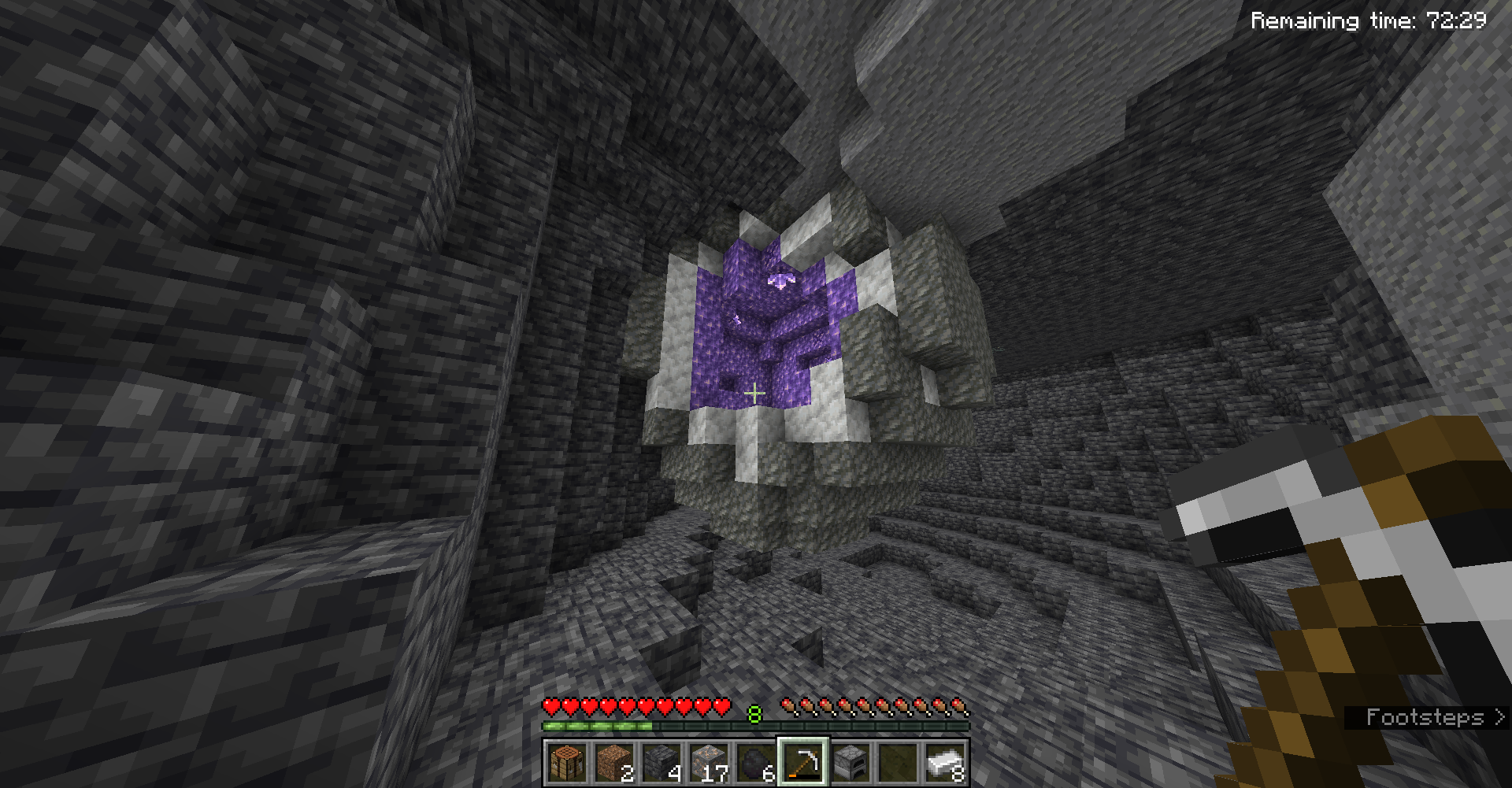 For some reason, the Amethyst Geode I found is generated almost surrounded by air, like it is floating in the sky. The seed is the demo seed (-343522682) and the coordinates are shown in a picture. If you cannot see the picture, the coordinates are -159 -40 -294.