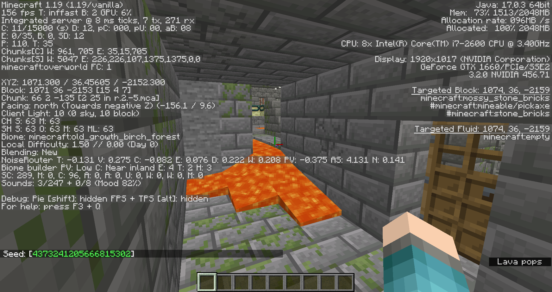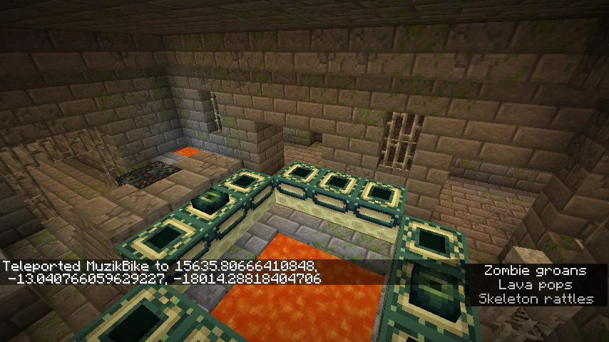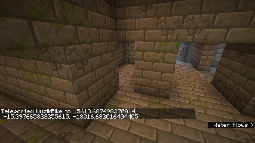 Coordinates: /execute in minecraft:overworld run tp @s 1071.30 36.46 -2152.30 -516.20 9.58Relates to MC-188358.