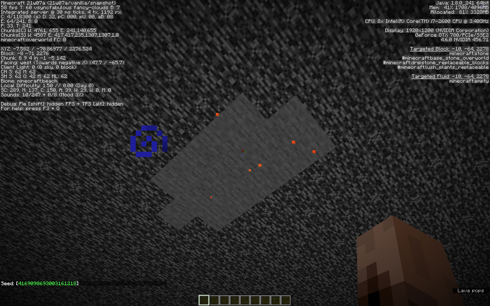 Using custom world generation settings which set the minimum world height lower than the minimum height for the world generator, lava pools will occasionally spawn in the world's bedrock layer, allowing access to the void.