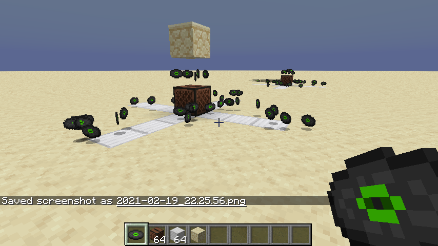 When removing music discs from a jukebox, they tend to fly out. Sometimes, they simply land on top, but other times they fly blocks away. If there is air above the jukebox and a block above that, they fly even further. In addition, they also tend to strongly favor the major axes when they fly out, so they rarely travel diagonally.