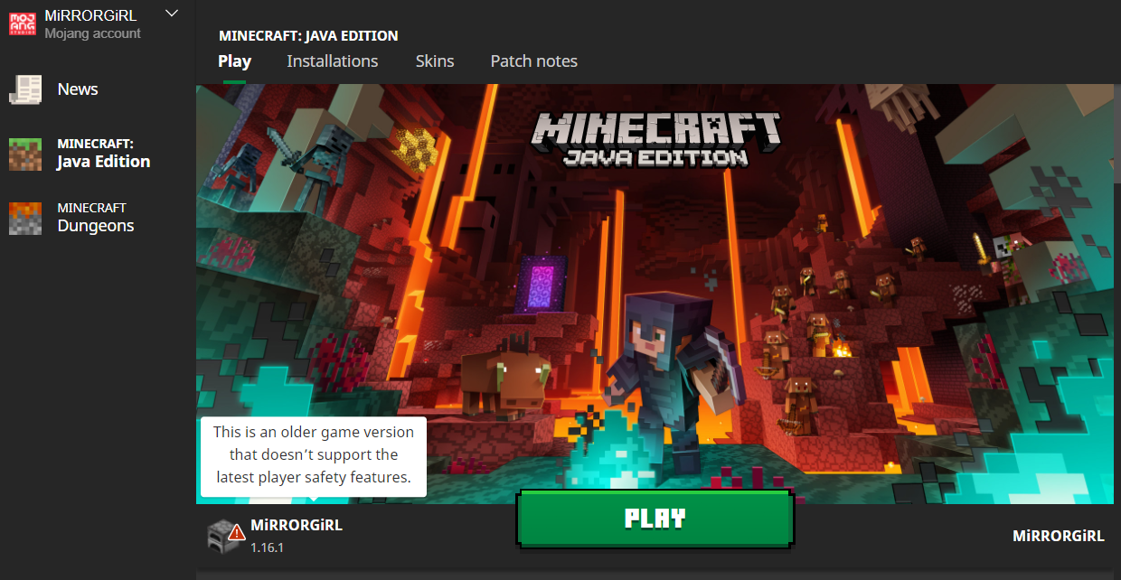 My Minecraft Java Edition is not updating automatically and I can't update it manually, there isn't the arrow that gives you the option to update it by yourself, I want to play the 1.16.5 version, but I just can't.