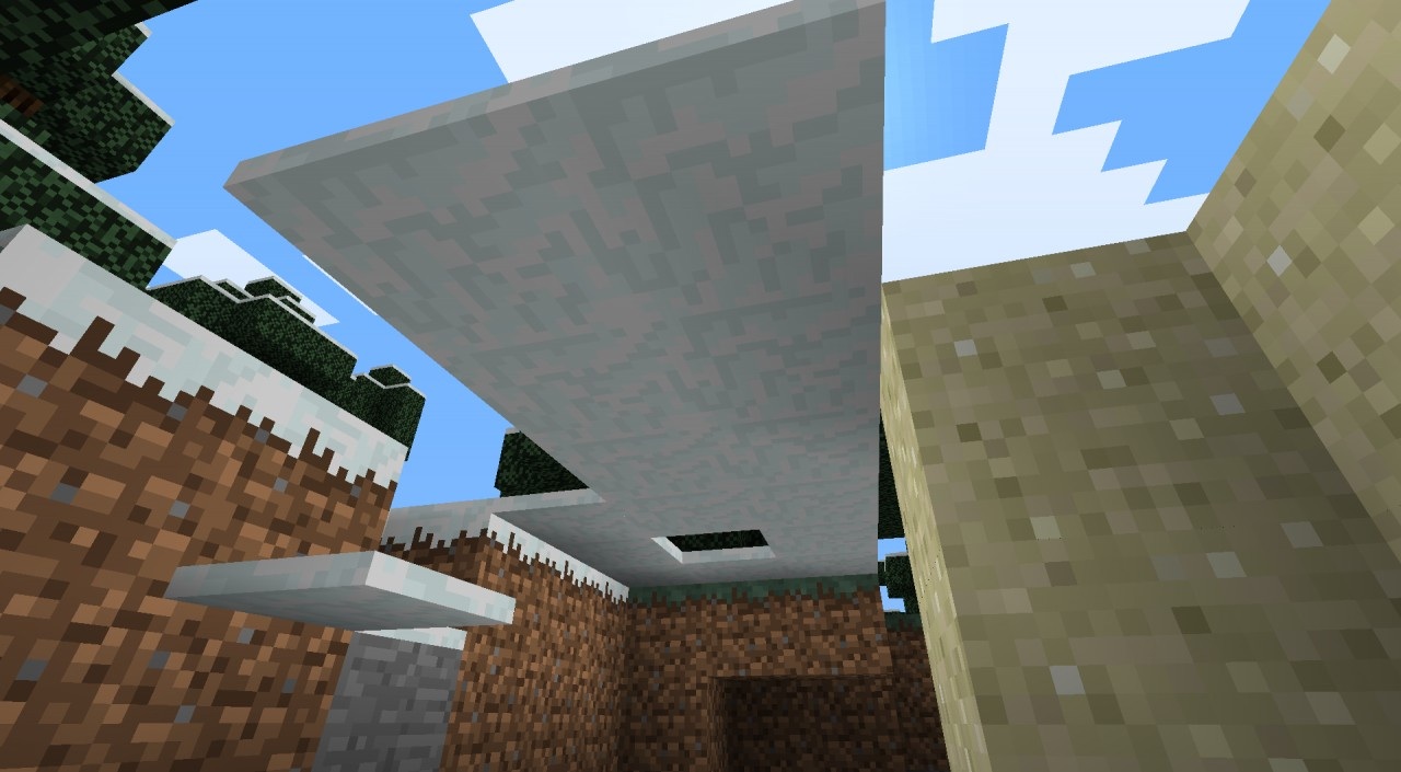 I started playing Minecraft, I spawned in a tundra and I found a pond with floating snow layers. They were hanging off the edge, I know this isn't normal, but I saw in other worlds too. Can you please fix this. Thanks! The picture below is the same issue that I saw, it isn't a screenshot, but its the closest thing I could find to the issue that I had.