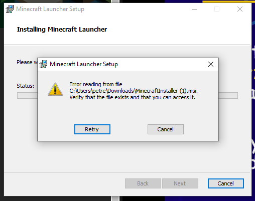 No matter how many times I attempt to restart the launcher, it cannot red my files. I haven't enabled any firewalls since I've only had this computer up and running since yesterday. There are no other accounts linked to this computer and I am the admin/owner of the PC..