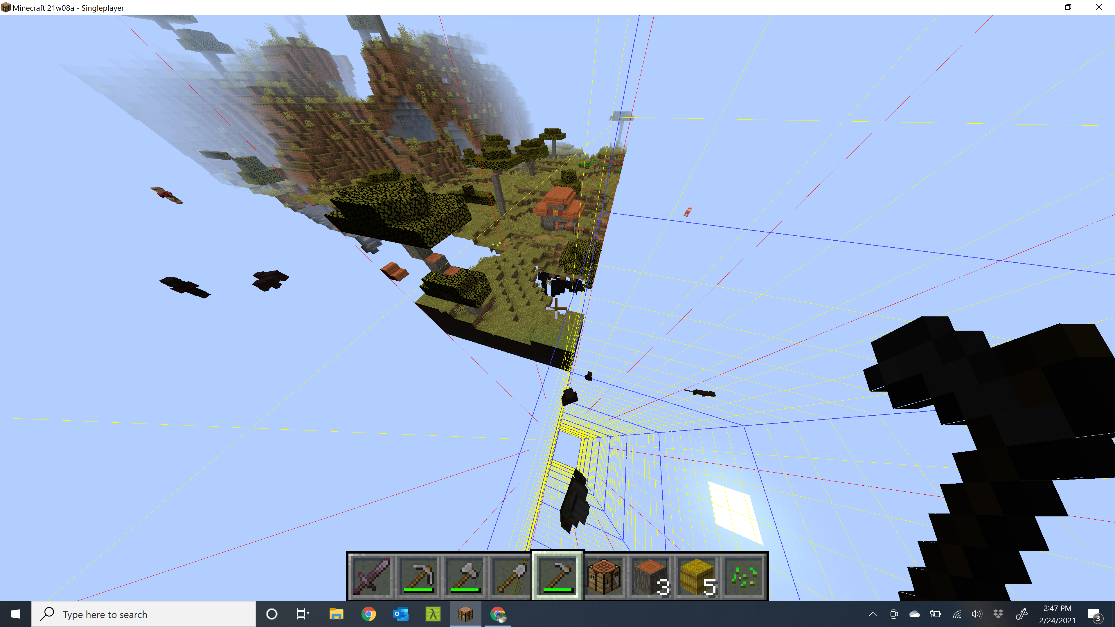 Spawned in a new world on 21w08a, did a /locate village and clicked on the provided hyperlink to auto-teleport to that location. I spawned on the edge of a chunk and the chunk was missing (golem, villagers, and cats were in the chunk and stuck in place and twitching). See attached screenshot.