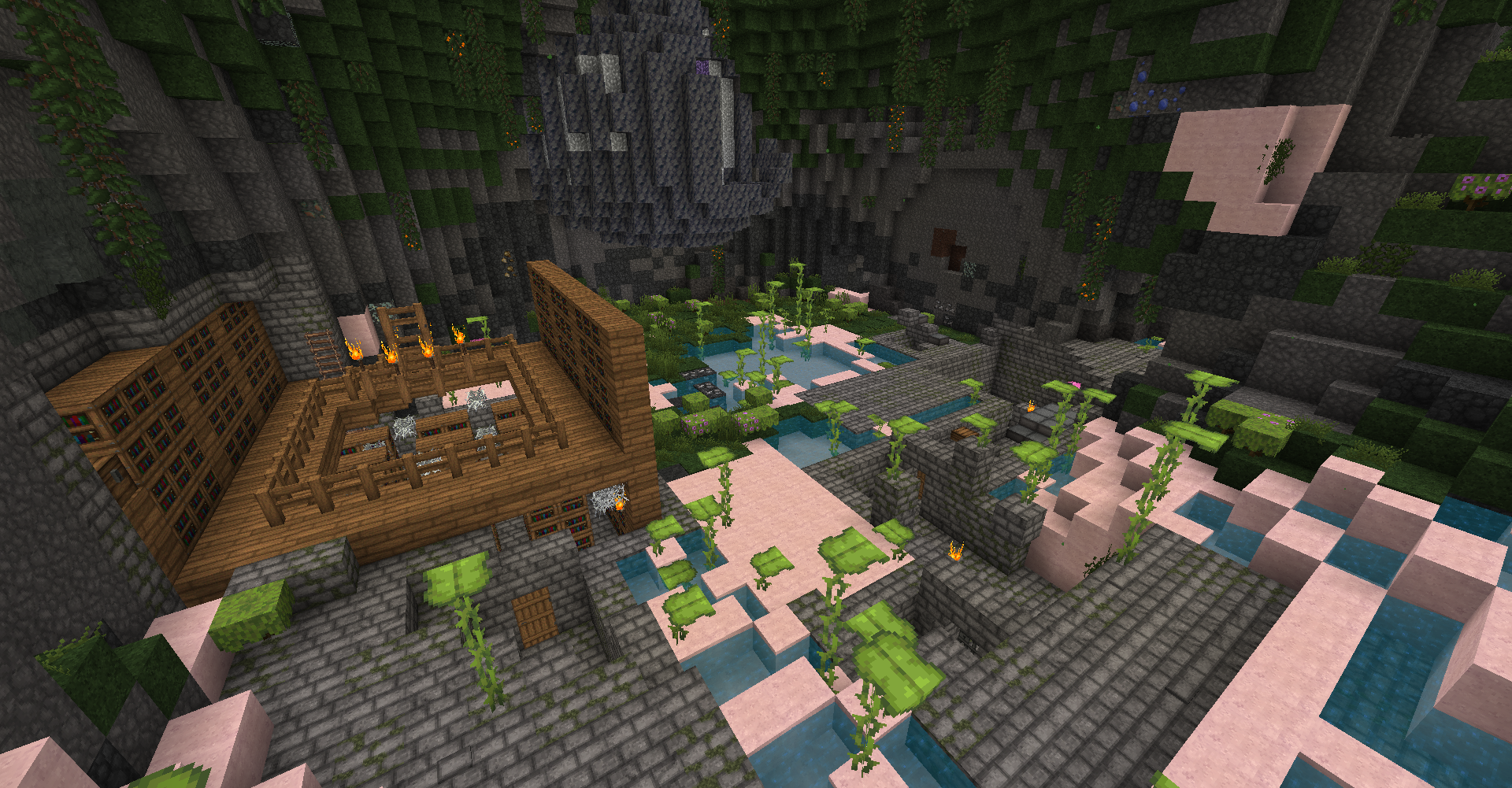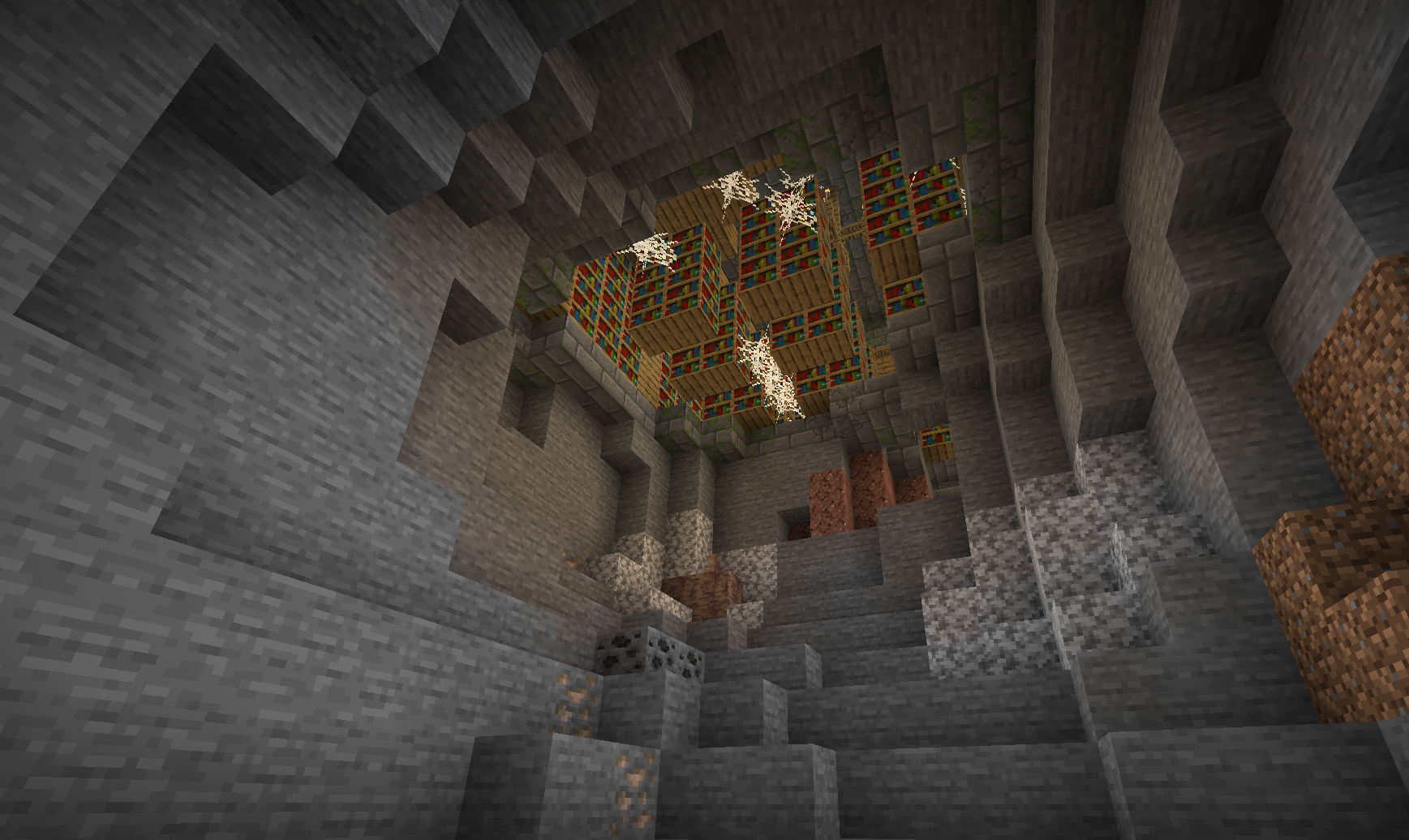 This is also somewhat inconsistent with Minecraft: Bedrock Edition, as in Bedrock, caves cannot ever destroy the stronghold's ceiling, walls or floor on their own.