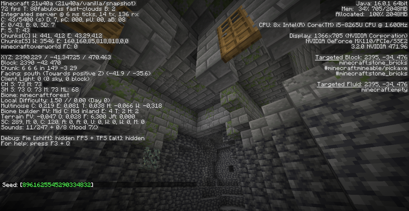 Generate a world with the seed provided above and teleport to the given coordinates.