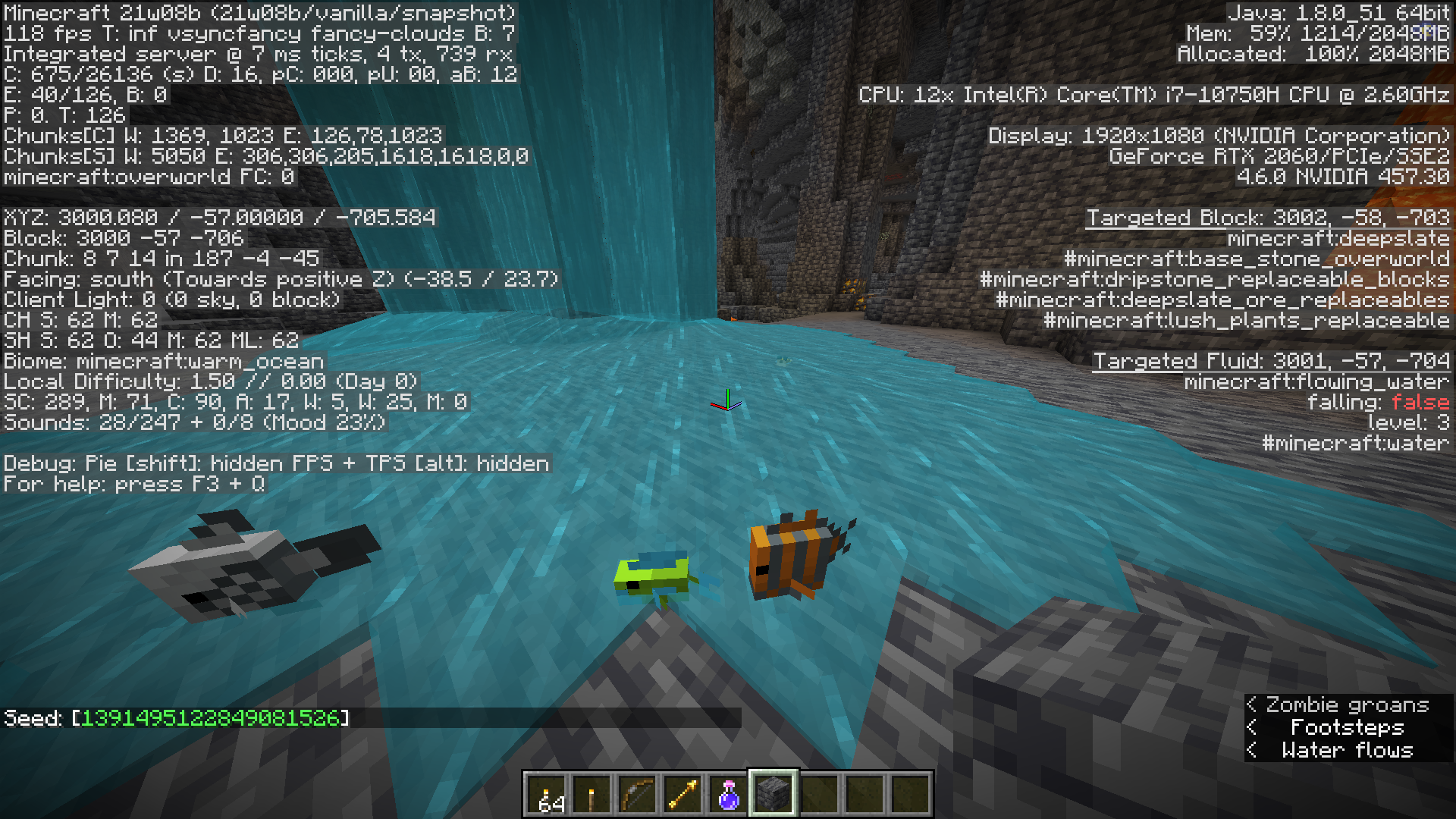 Fish spawn inside waterfalls generated inside caves because of the ocean biome above.