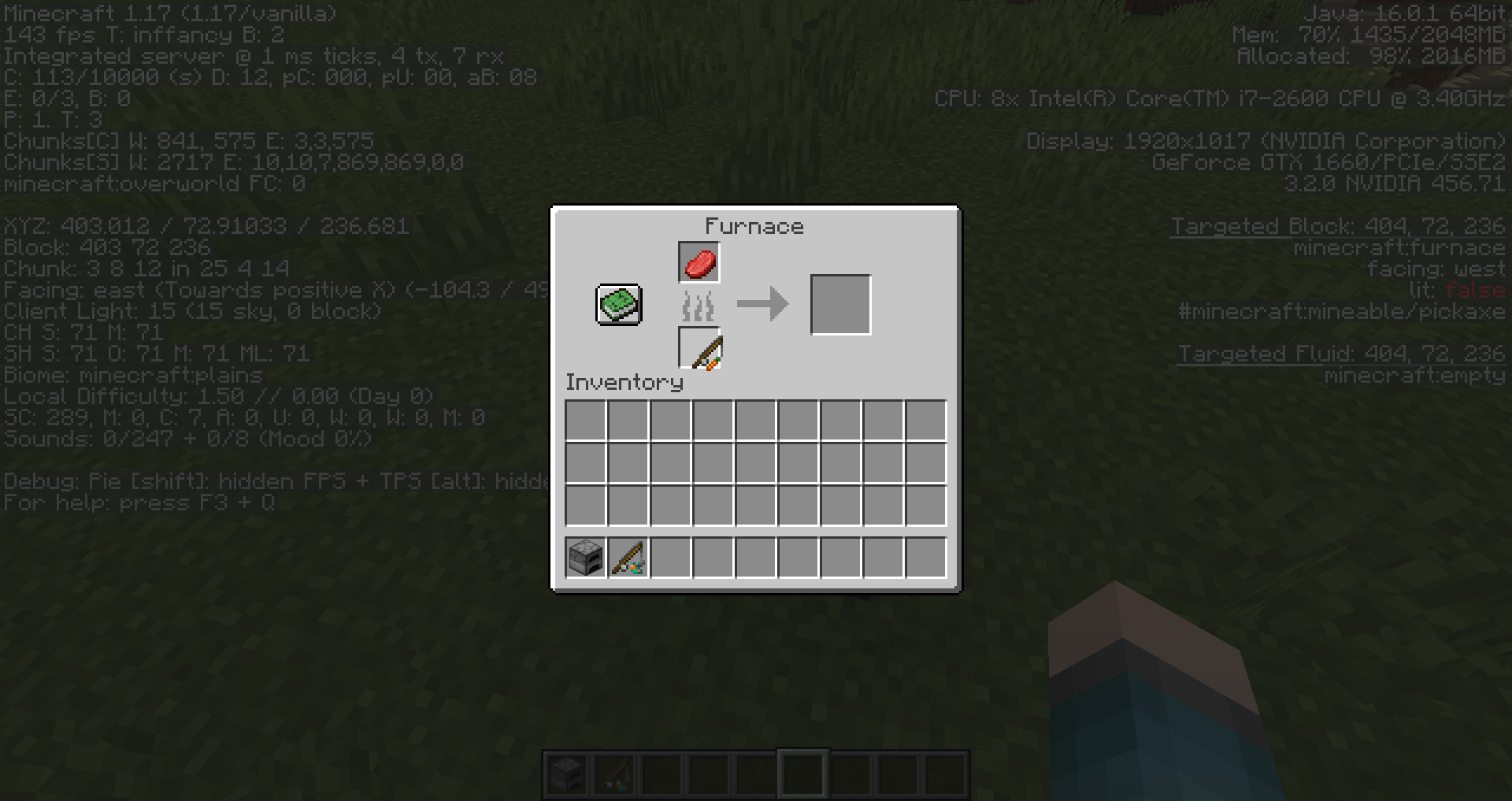 Attempt to place a fishing rod in the fuel slot of the furnace.
