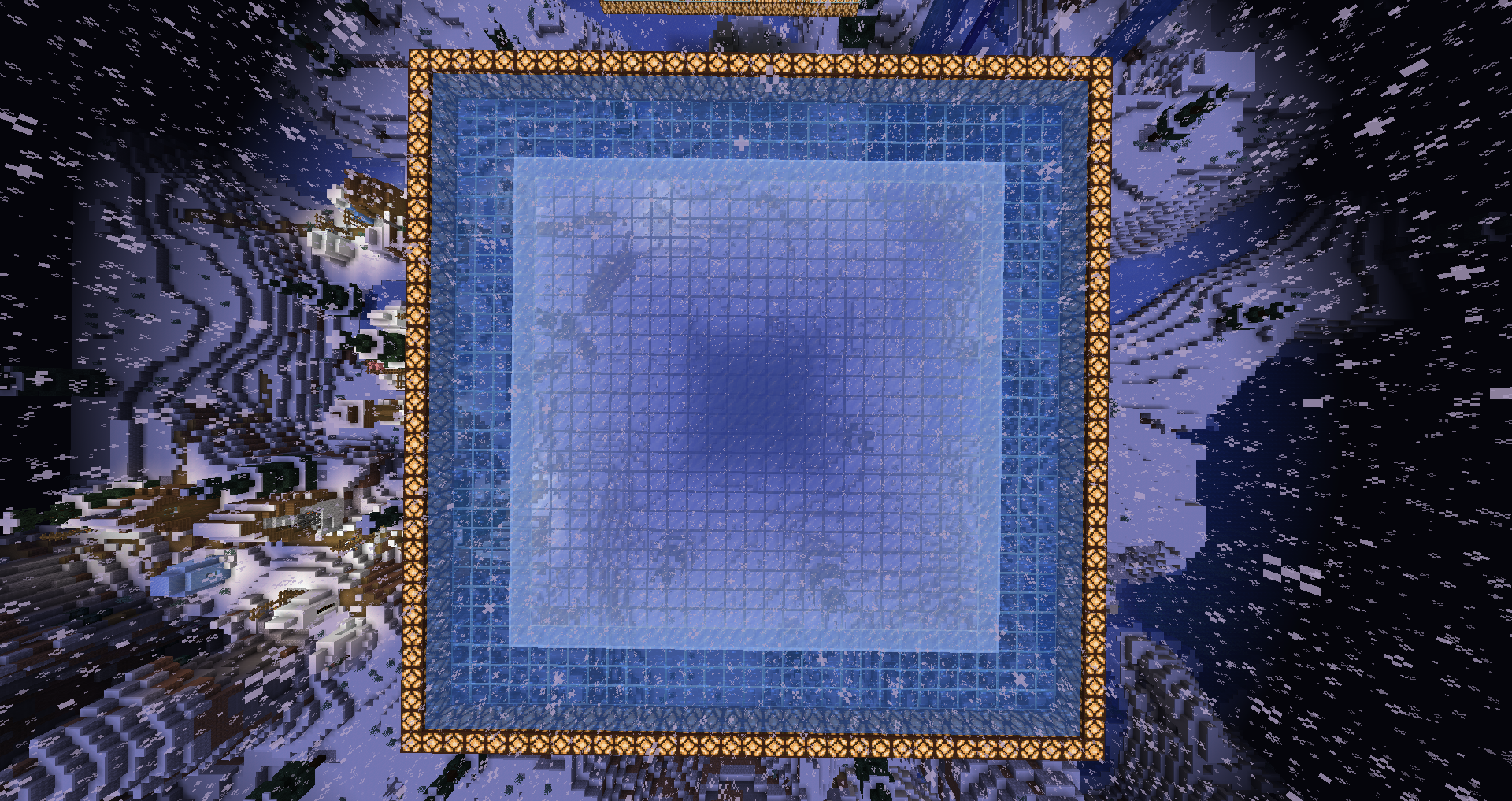/fillbiome ~-20 ~-5 ~-20 ~20 ~10 ~20 snowy_plains /fill ~-16 ~-1 ~-16 ~16 ~-1 ~16 glass /fill ~-16 ~ ~-16 ~16 ~ ~16 glowstone /fill ~-15 ~ ~-15 ~15 ~ ~15 water /fill ~-10 ~ ~-10 ~10 ~ ~10 ice /weather rain→ ❌ The ice does not form 1 block further than the fill command, no matter how long you wait