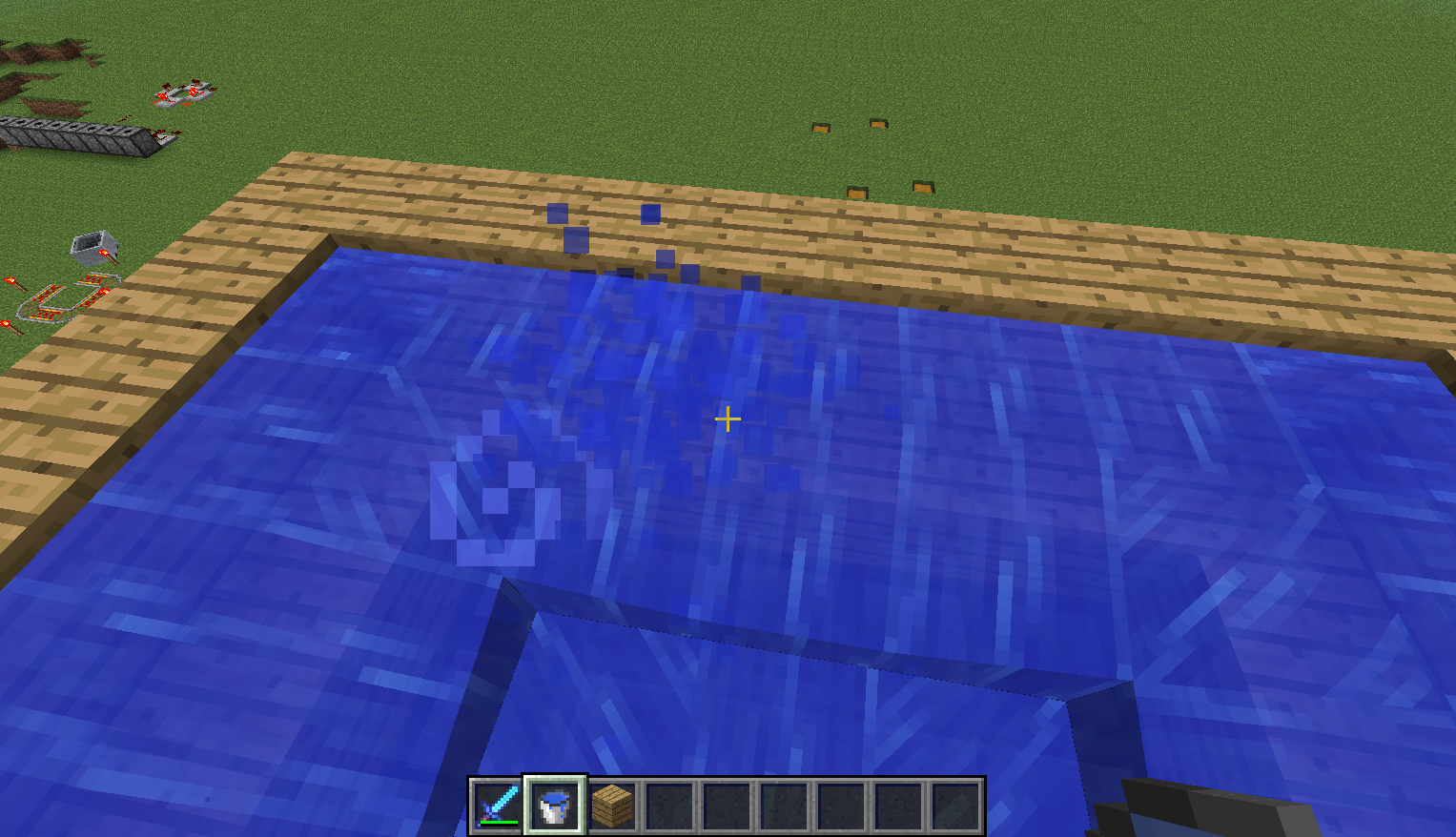 Placing water from a bucket in creative onto oak wood planks creates water breaking particles and plays the stone destroy sound