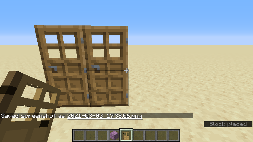 3. Note how no matter where the door is placed on the block, the hinge will now always face away from the door, as it tries to form a double door even though the resulting double door is clearly not valid: