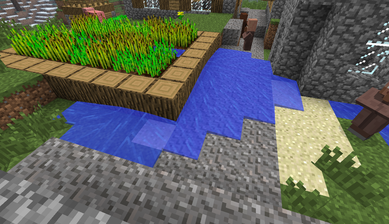 I was exploring my world when I stumpled apon a NPC village, I saw that there was a random pool of water with no water source.