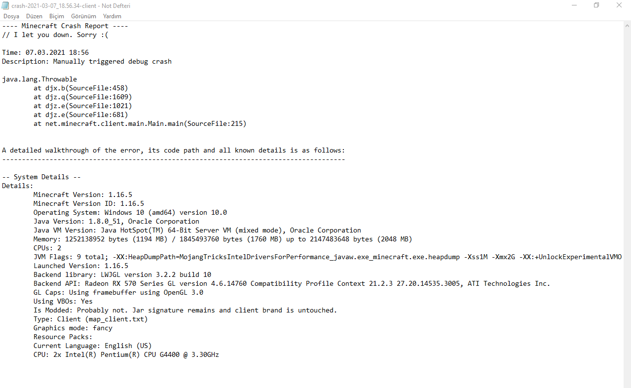 Please force a crash by pressing F3 + C for 10 seconds while in-game and attach the crash report ([minecraft/crash-reports/crash-<DATE>-client.txt|https://minecrafthopper.net/help/finding-minecraft-data-folder/]) here.
