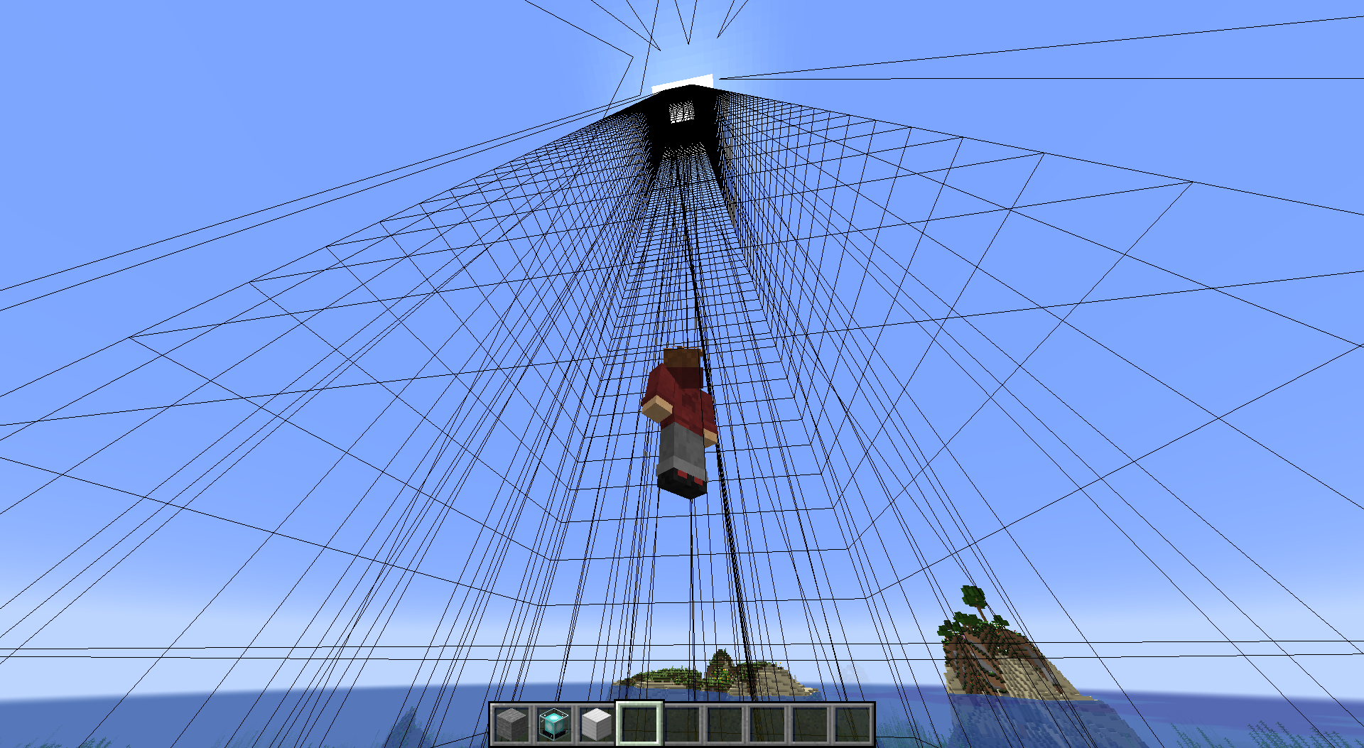 Debug Chunk Border Rendering (F3 + G) is severely messed up, only showing up from certain angles, and showing up black. It shows up mostly consistently when in Third Person Back View looking straight up. It shows up with the correct colors when a beacon beam is present. When an End Gateway is present, the border appears to show the end gateway animation in it.