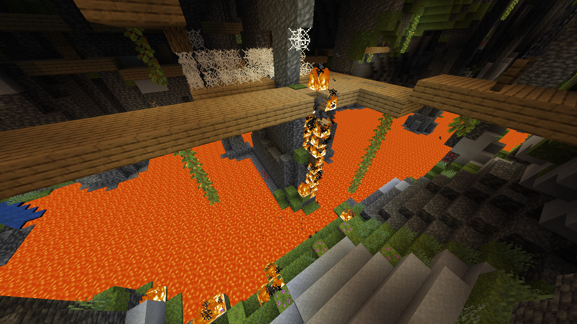 Huge fires can form when mineshafts generate next to lava.