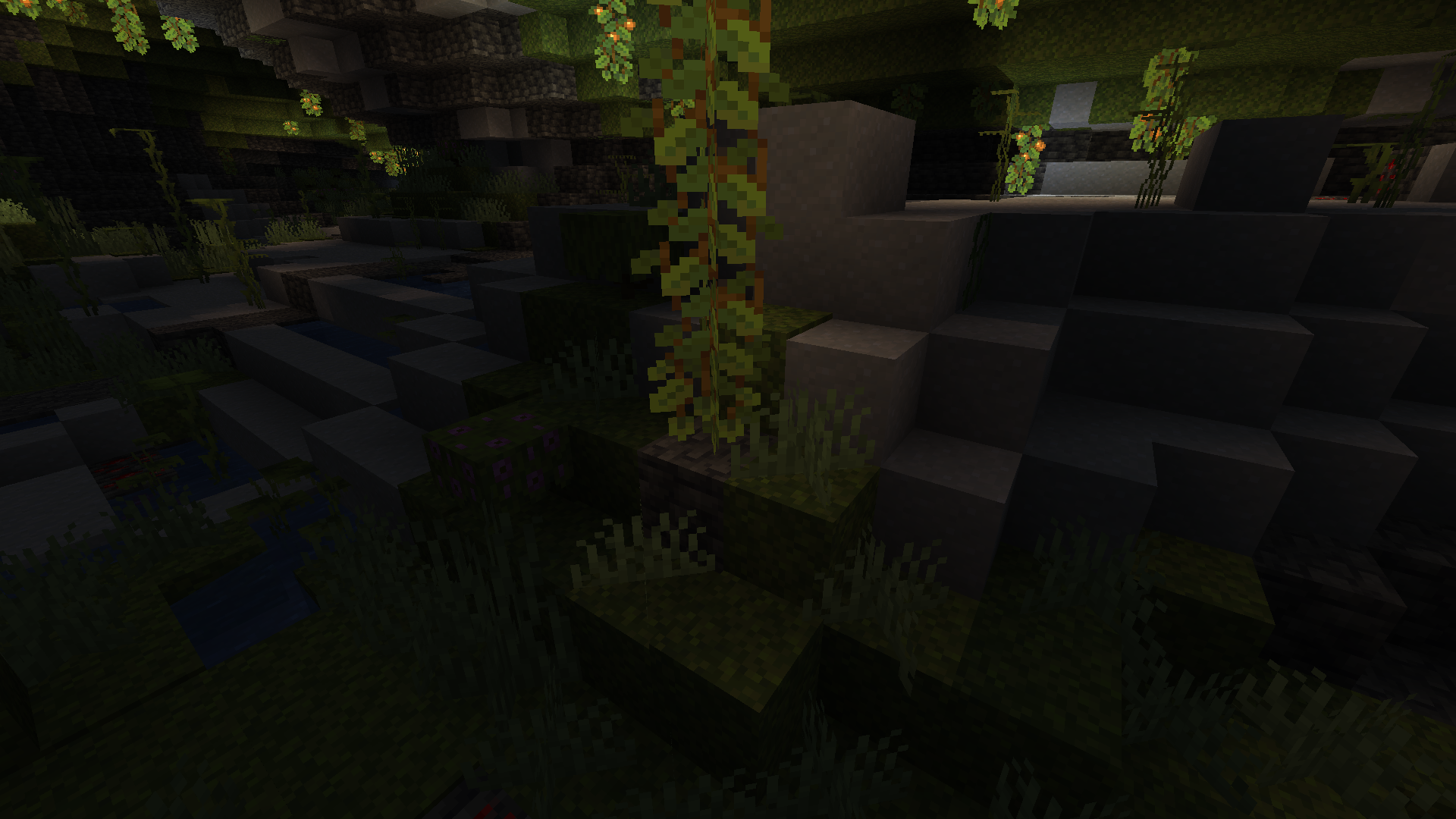 Lush cave blocks (moss blocks and clay) do not generate directly below decorative blocks like cave vines and glow lichen in the lush caves biome and are replaced with stone or deepslate, depending on where the cave is generated. Does not happen when there is air between the decorative block and the block below. The world generator seems to be treating these decorative blocks as solid blocks, and therefore not generating the appropriate blocks in the spot it thinks has a solid block above.