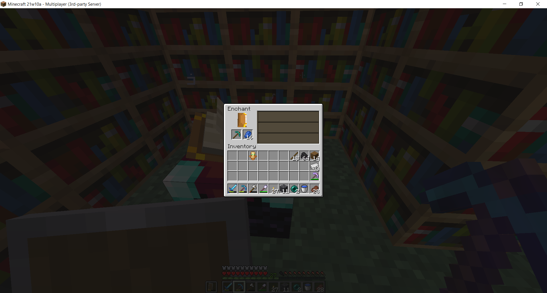 When using enchanting table, no matter if it is a book or a tool, you can't see any options.