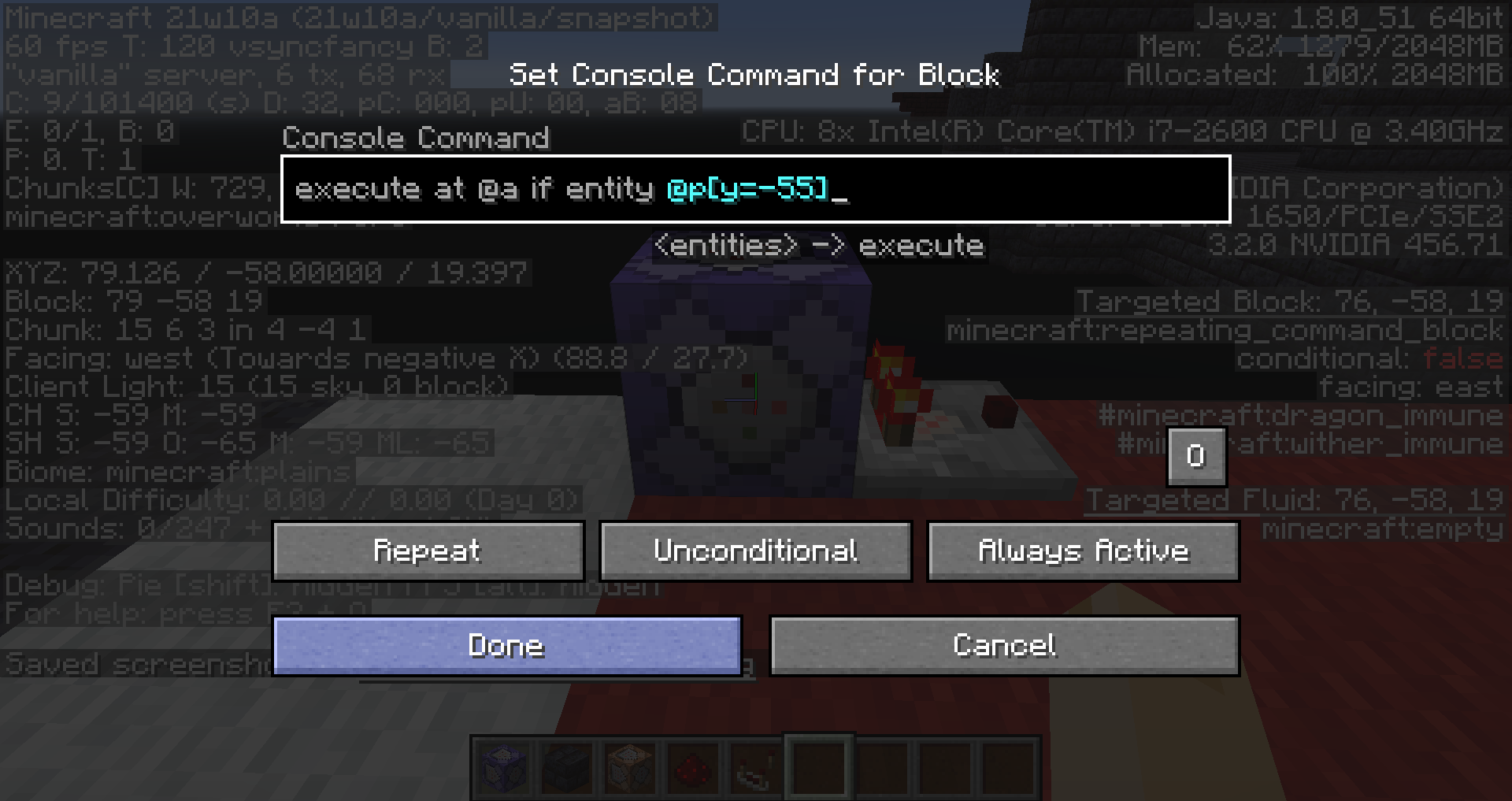 I placed another repeating command block with this text: