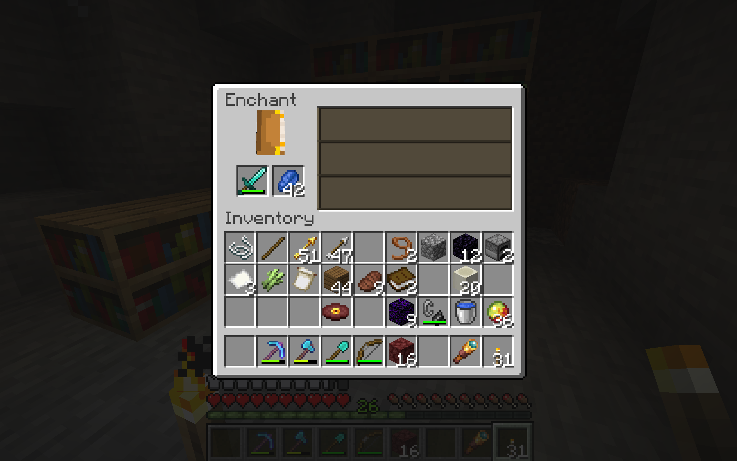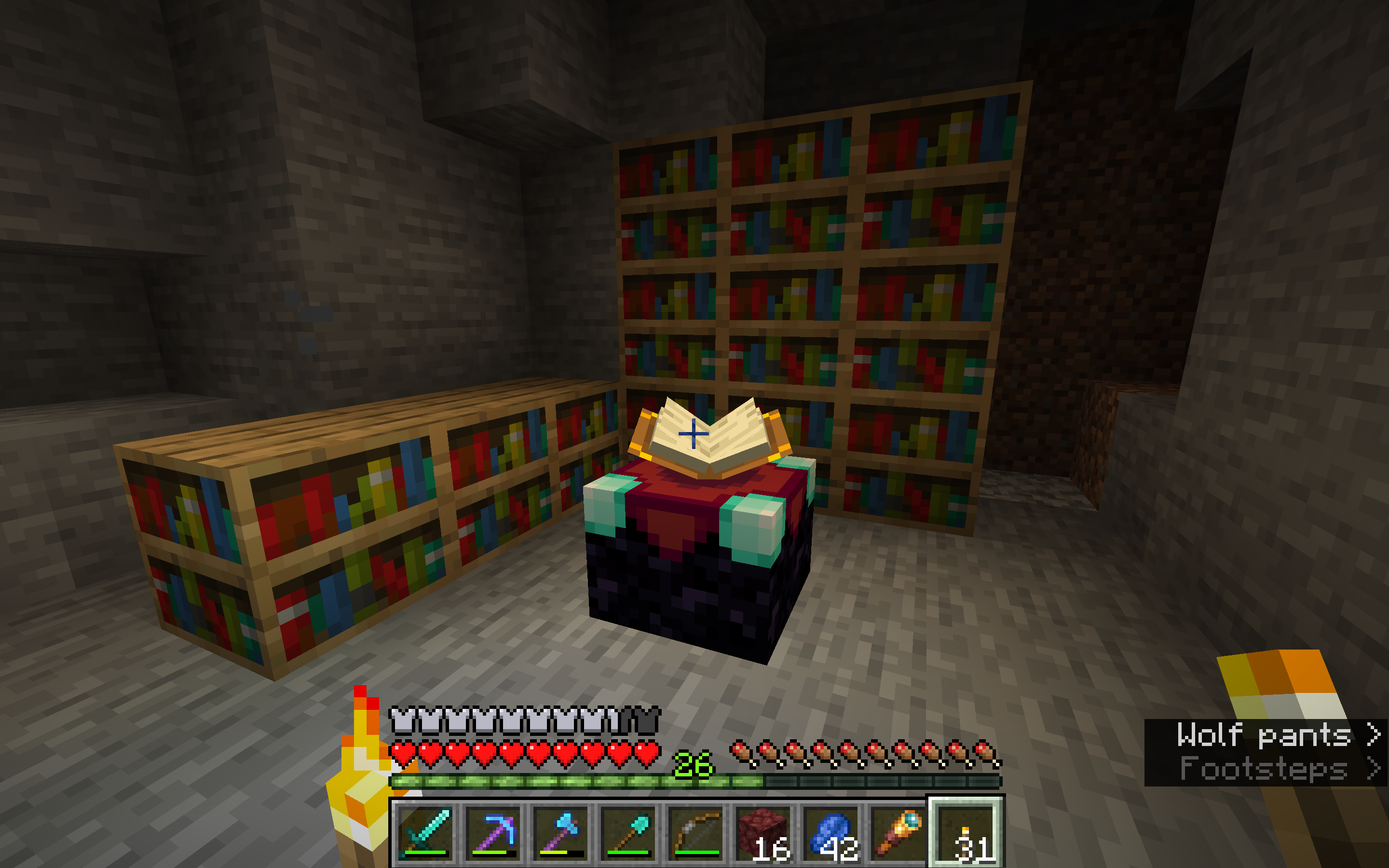 This same enchantment table worked before I added the three bookshelves of the left and the two top ones on the left and right.
