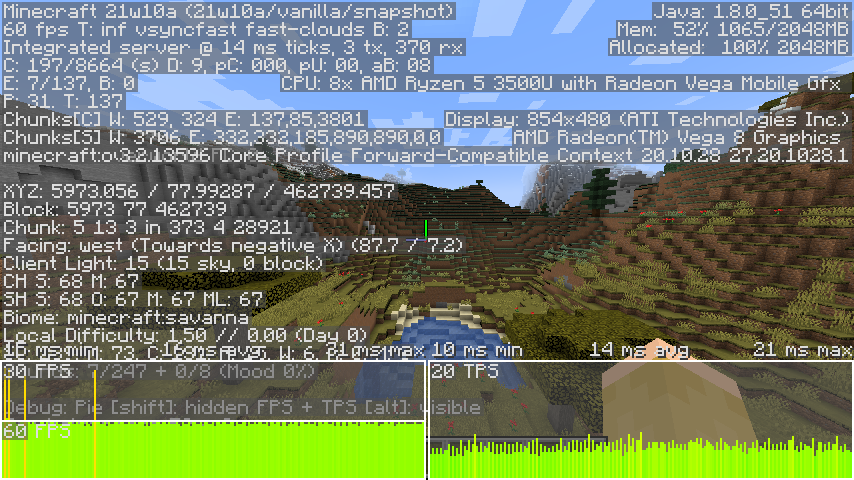 Black lines on blocks appear when flying around in 21w10a. I tried changing my graphics settings around but it had no effect. The one thing that does change it though is my render distance (see picture). No clue what is causing this.