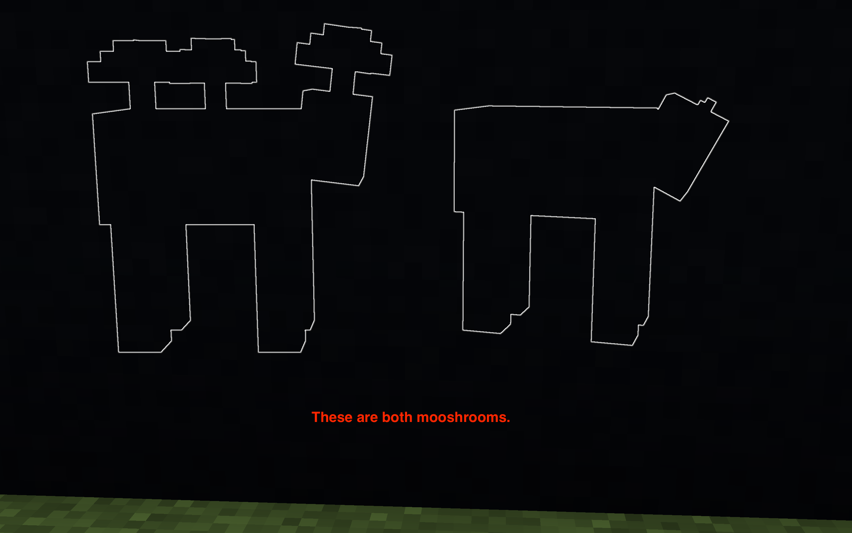 MC-84121 was fixed in 21w10a. However, if the mob is invisible MC-84121 still occurs. Invisible glowing sheep do not have their wool outlined. Invisible glowing mooshrooms do not have their mushrooms outlined. Invisible glowing slimes only have their inner part outlined. Invisible glowing snow golems do not have their pumpkin outlined.