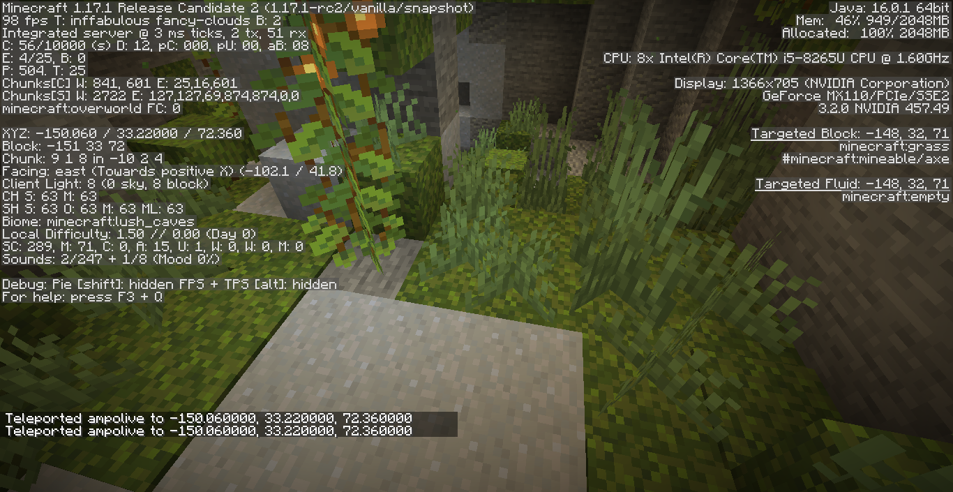 Repeat the step from Step 1 (create a new world with lush caves single biome and the same seed)