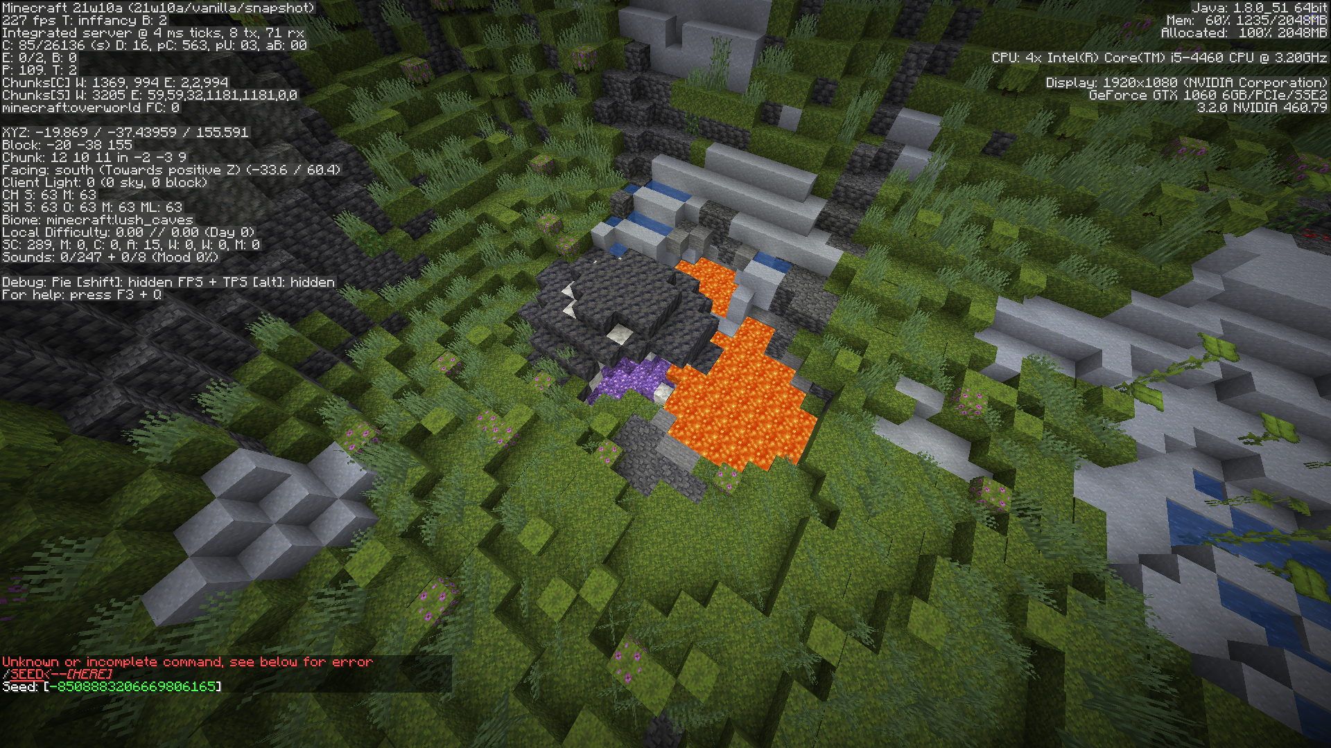 Create a singlebiome lush caves world with seed -8508883206669806165