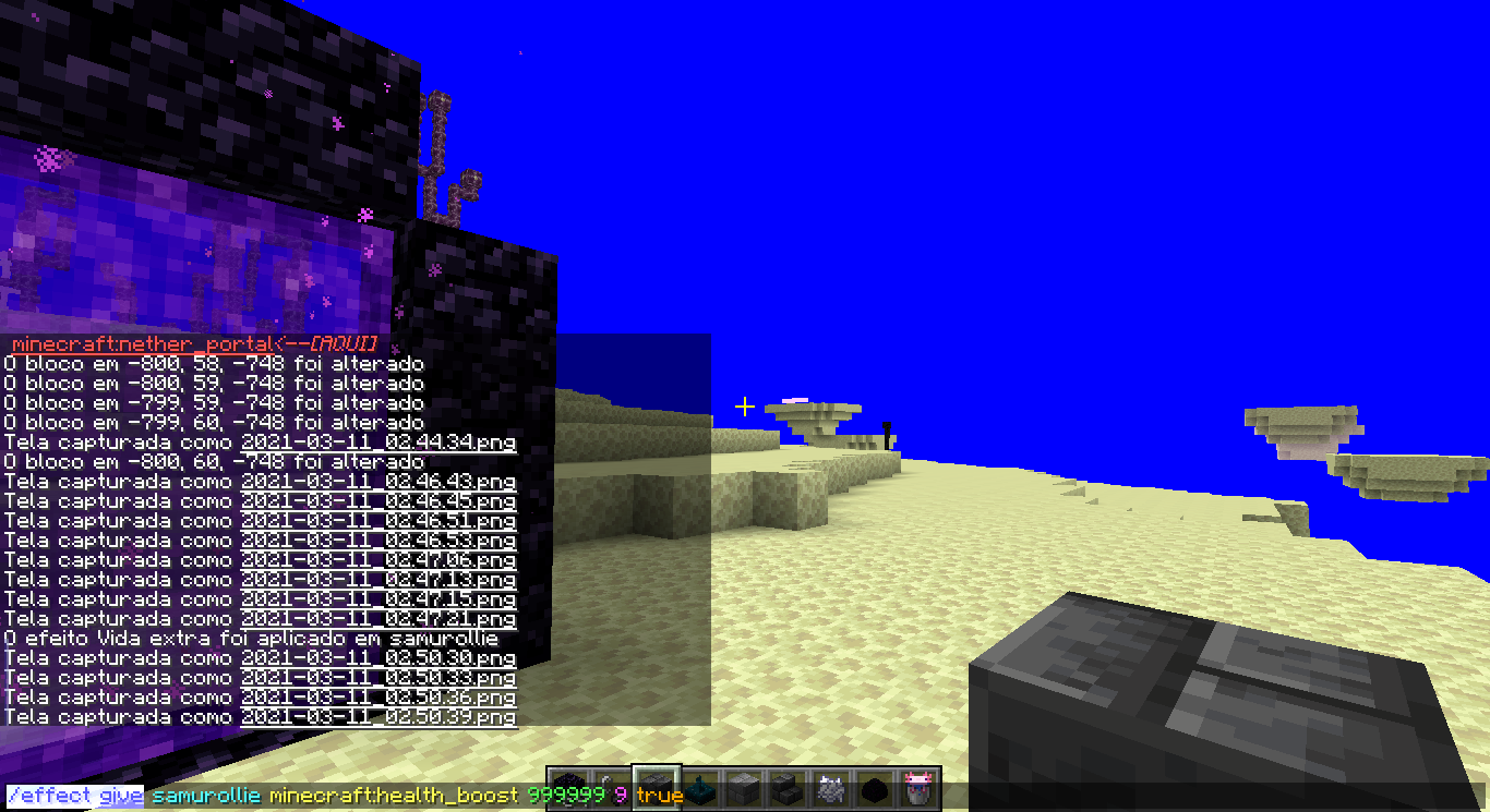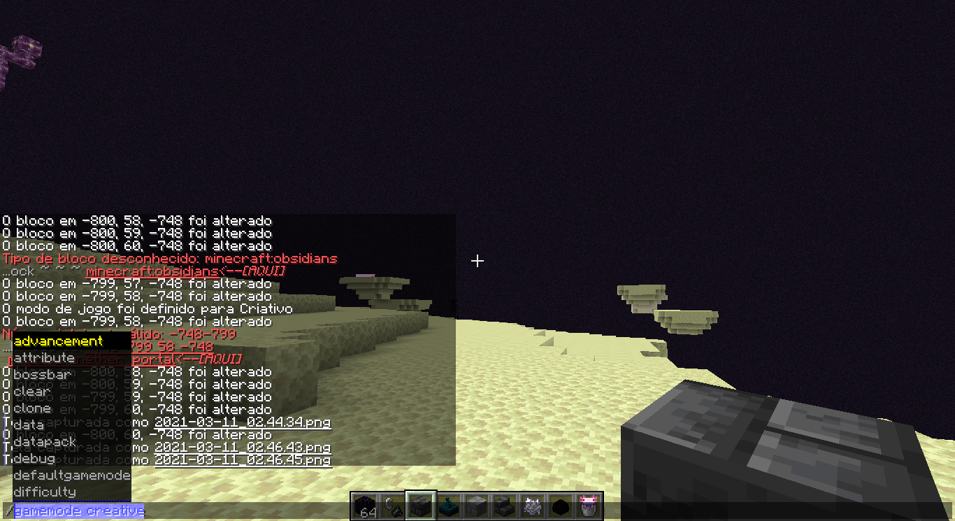 In the end dimension, when selecting a command in the chat, while the cursor is above certain parts, the sky turns completely blue.