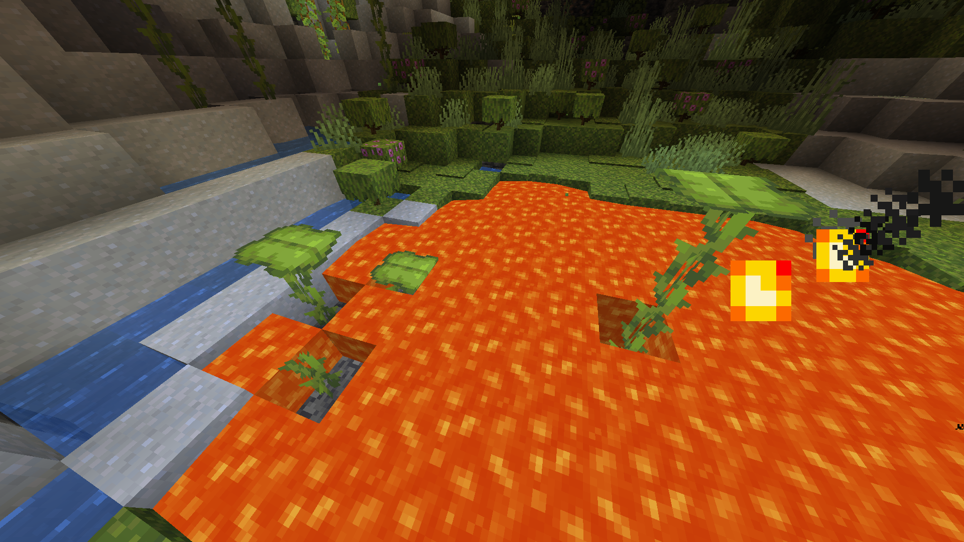 If a Large Dripleaf is placed in lava, it doesn't burn or disappear. It just stays where it was placed and even can be placed under the lava. This allows the player to hide under the lava, without taking damage.