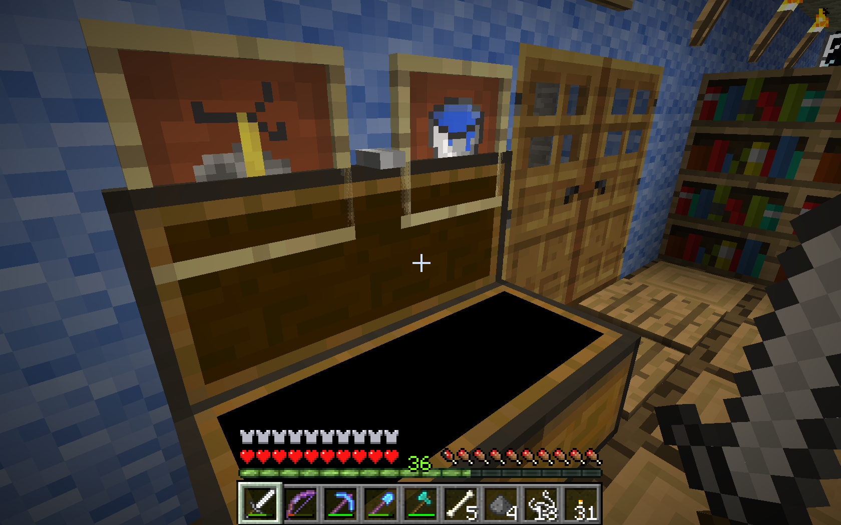 The opened lid of chest shows z-fighting with item frames placed on the wall behind.