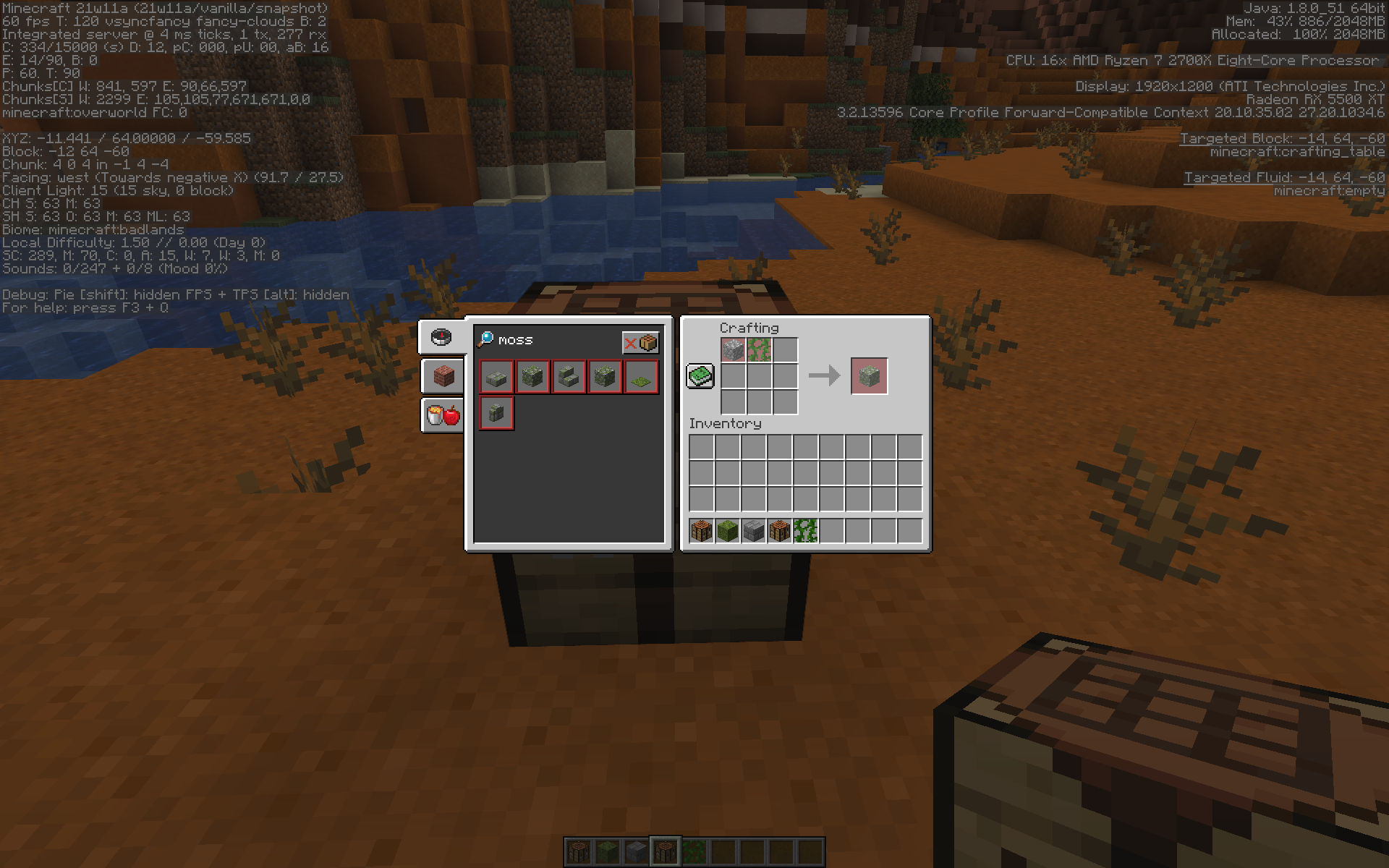 The crafting recipes for Mossy Cobblestone aren't grouped together in the recipe book.