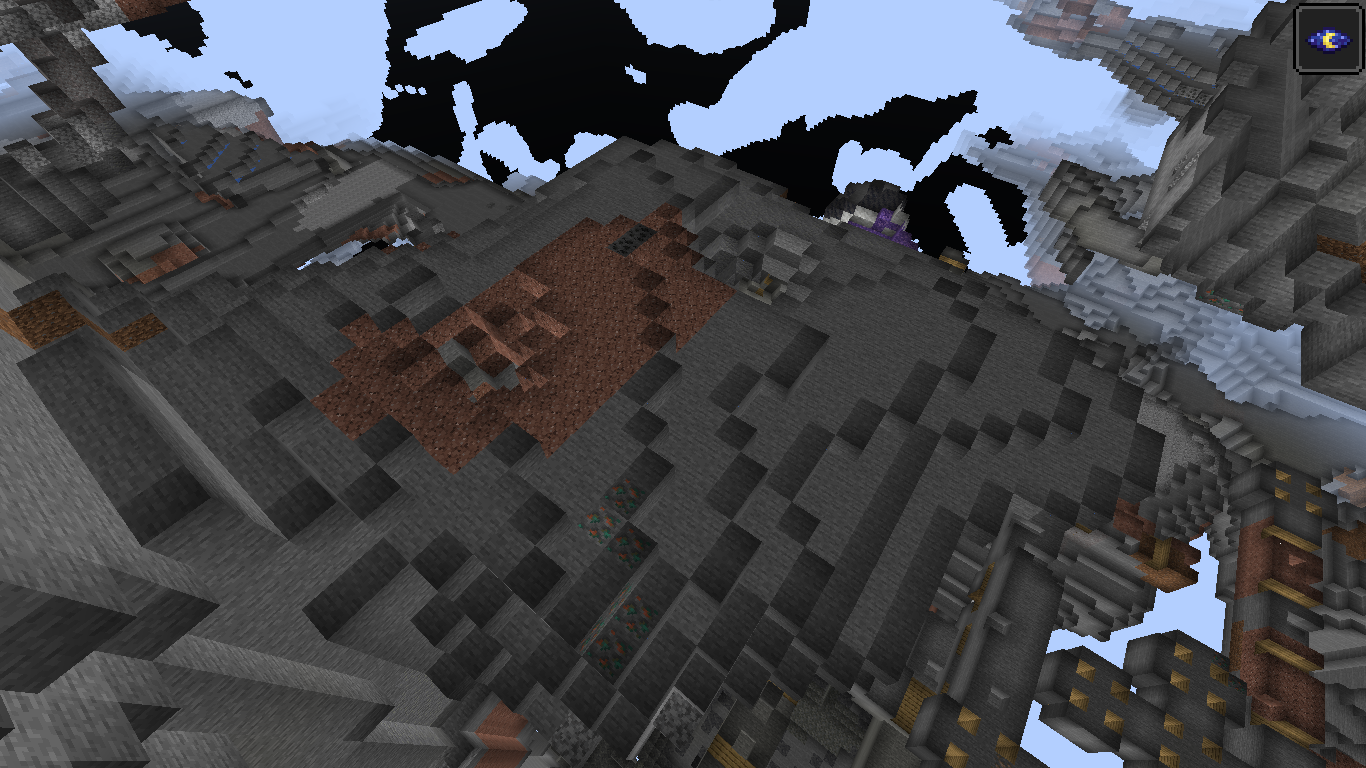 Can't see inside caves, only outside walls of caves and can see grass on grass blocks from below