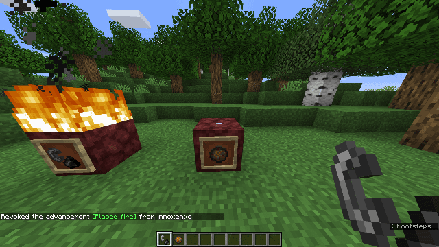 To test the fire charge, I then revoke the advancement from myself using commands and validate that I no longer have the advancement: