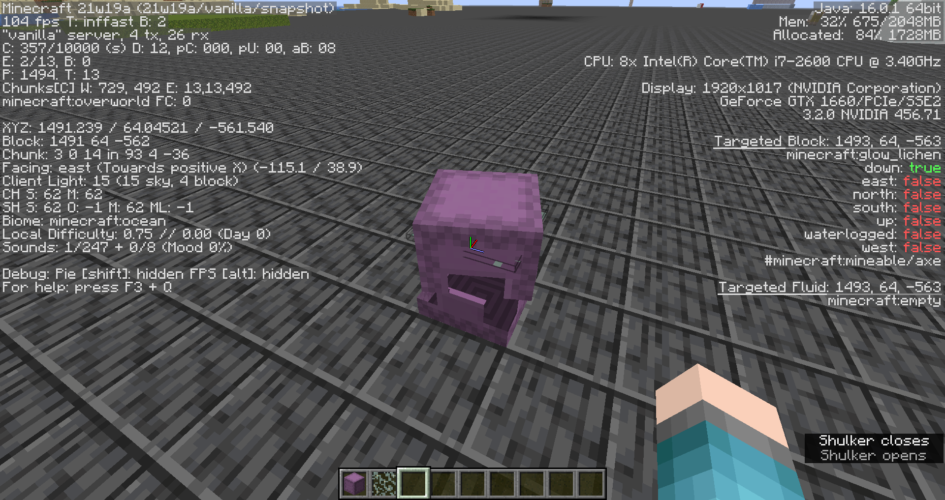 ❌ → Notice how shulker boxes can be opened when blocked by glow lichens.