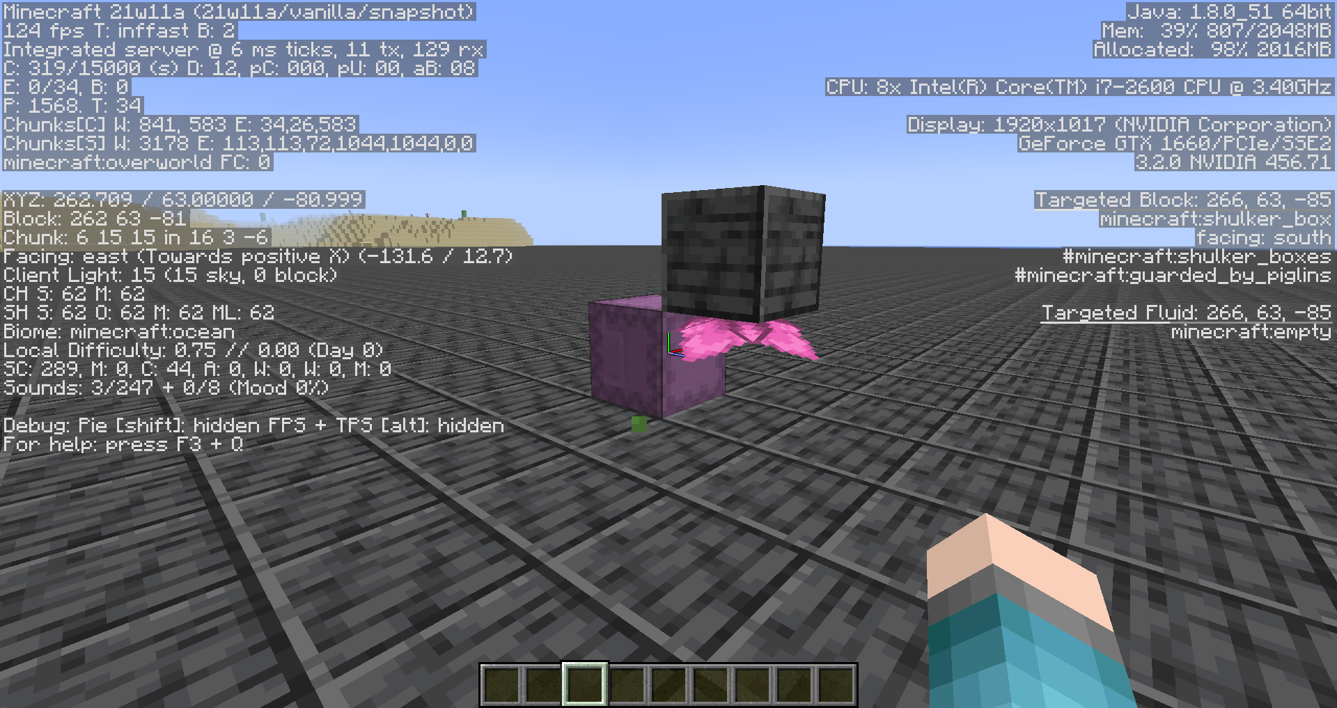 Shulker boxes placed horizontally can be opened when blocked by spore blossoms.